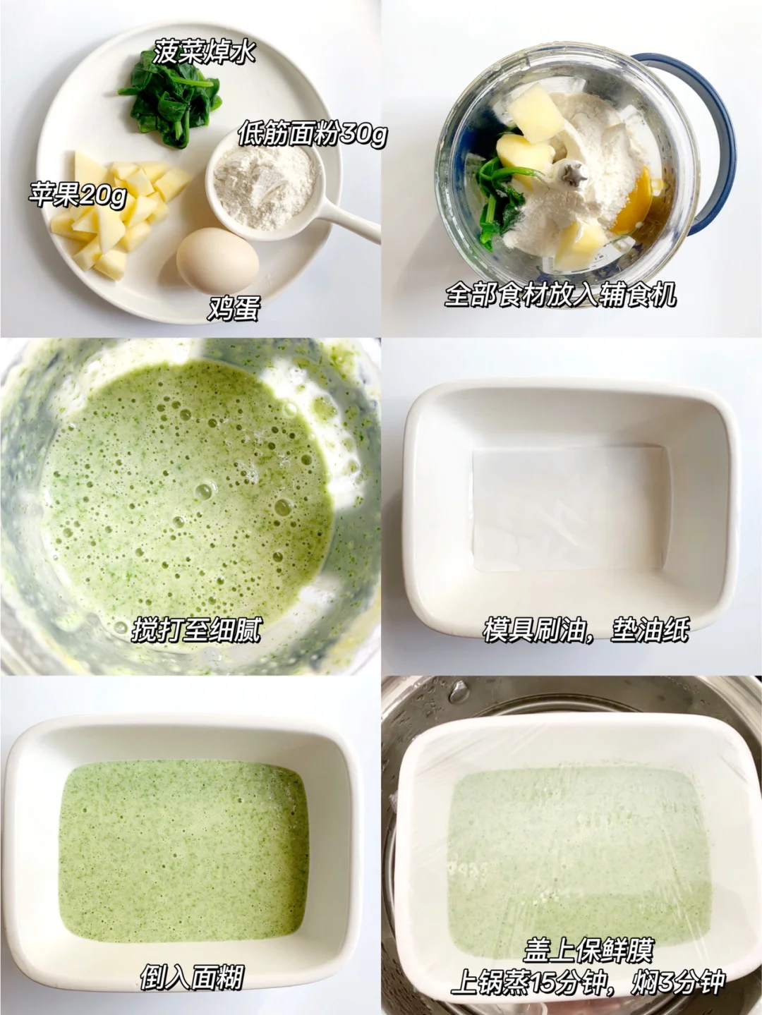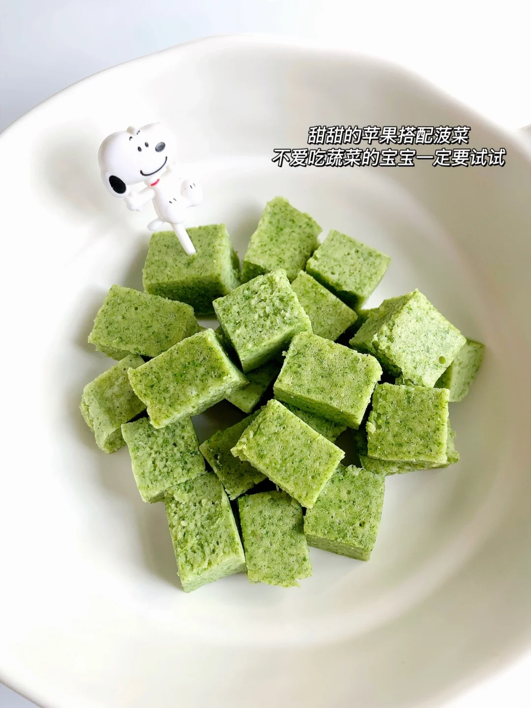 不爱吃蔬菜的宝宝可以要试试这个菠菜苹果蒸糕,菠菜搭配苹果,苹果有香甜的味道,口感松软又好吃[害羞R],还没长牙的小宝宝也可以吃哦,锻炼咀嚼能力