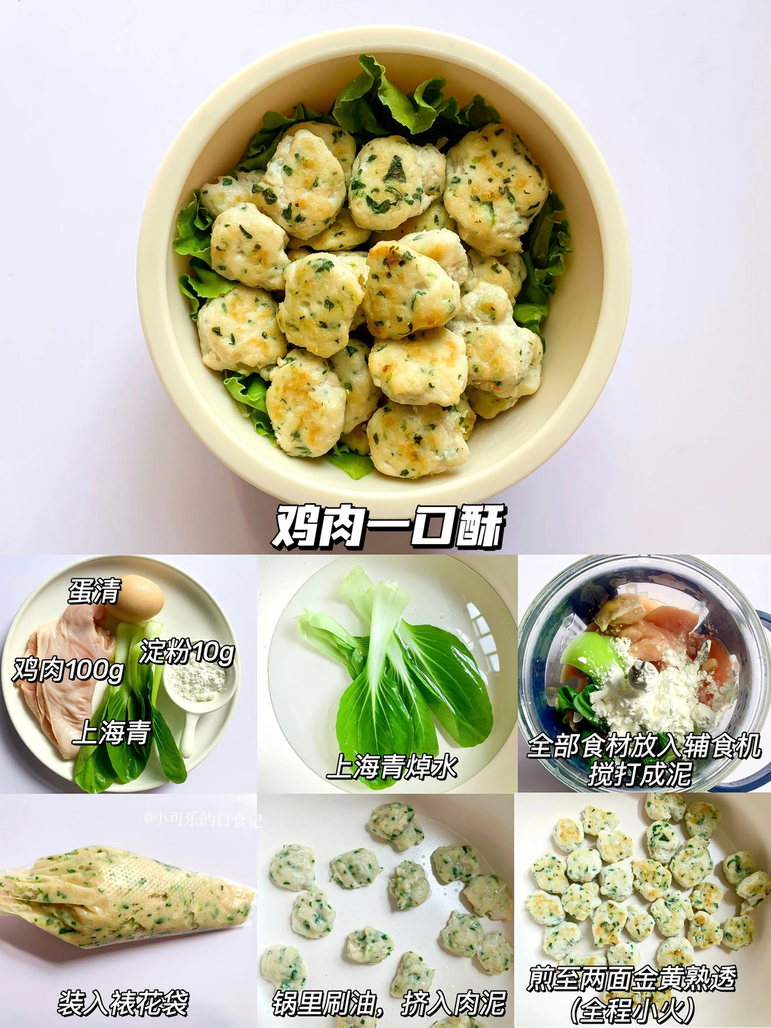 👩🍳做法:上海青焯水,全部食材放入辅食机搅打成泥,装入裱花袋。锅里刷油,挤入肉泥,全程小火,煎至两面金黄熟透