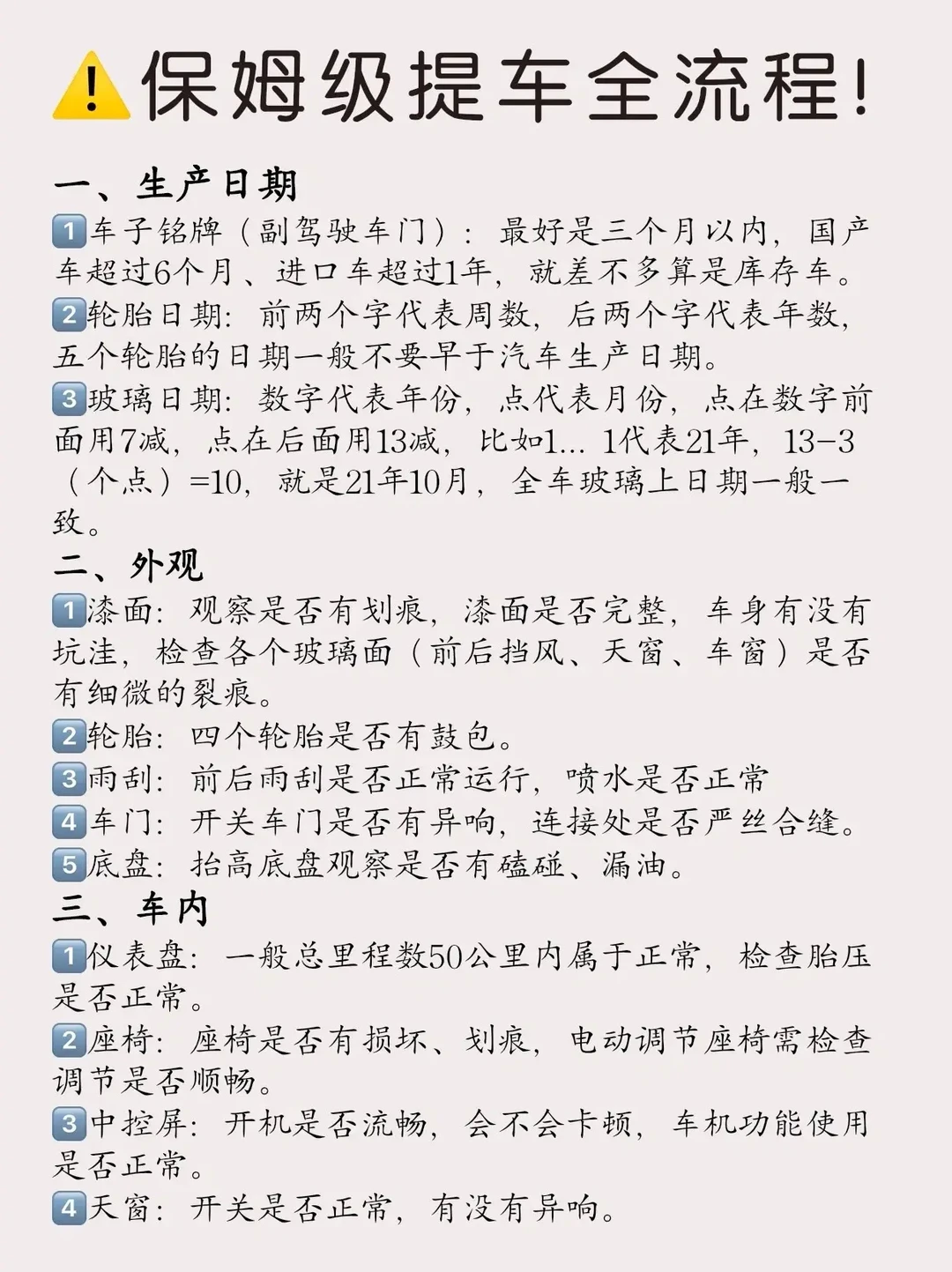 车子出生日期(副驾门铭牌)、四个轮胎、前后挡风玻璃、四面玻璃
