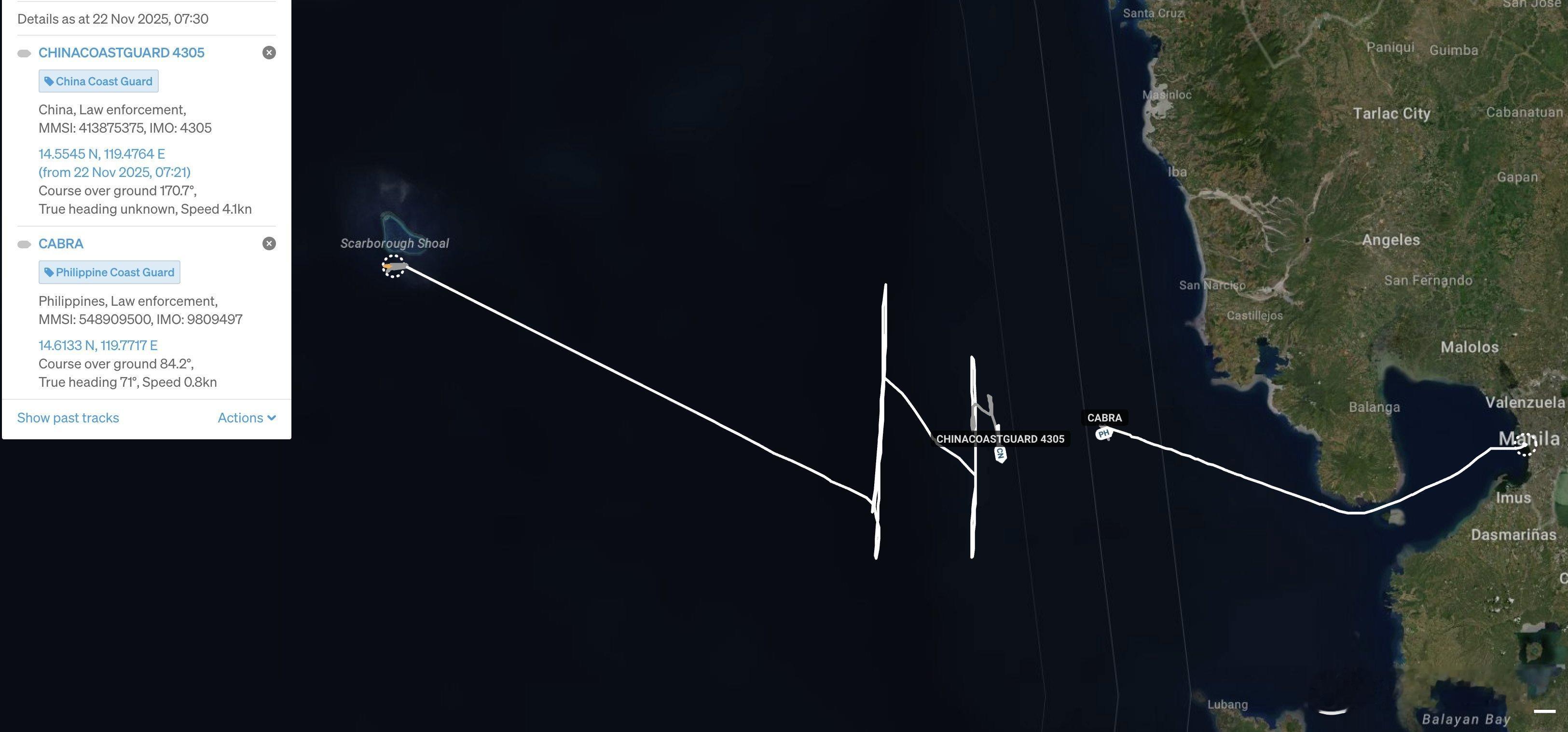 中国海警4305舰今天从黄岩岛前出到距菲律宾海岸35海里的海域巡航。菲律宾声称中