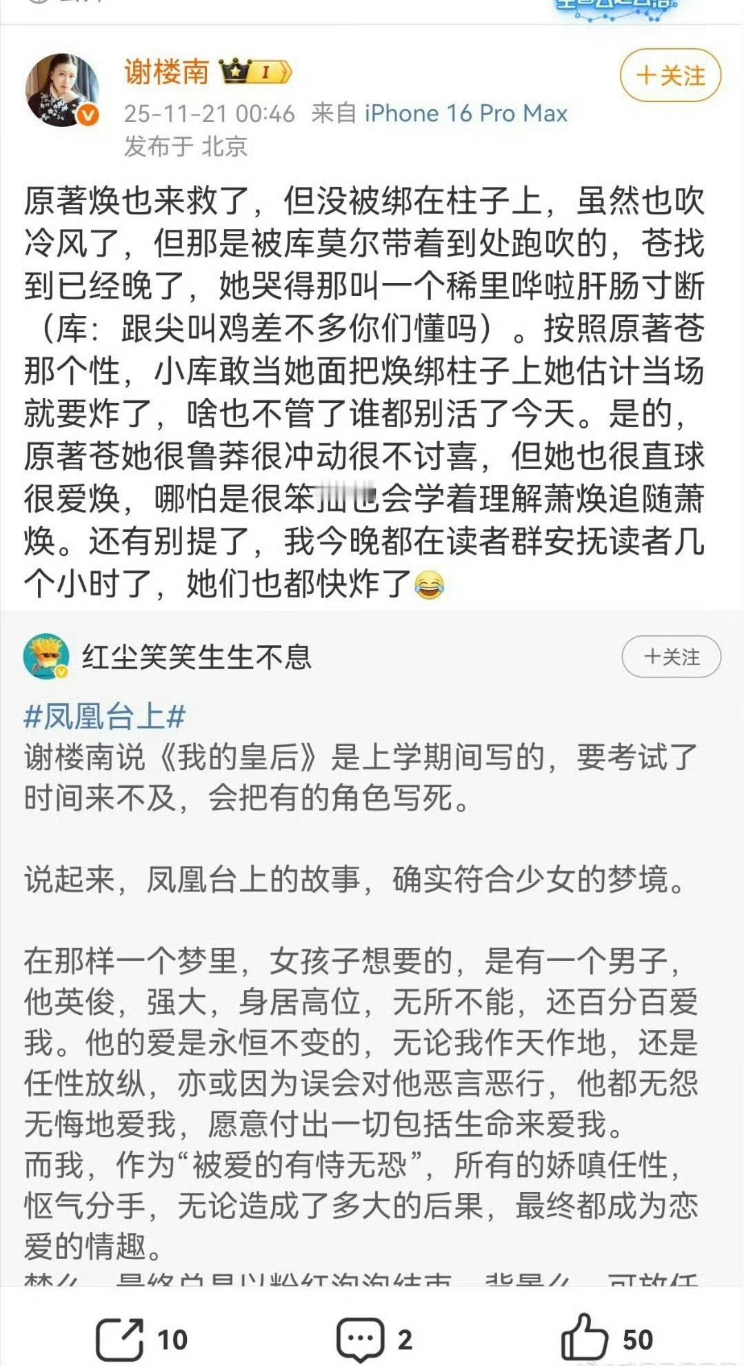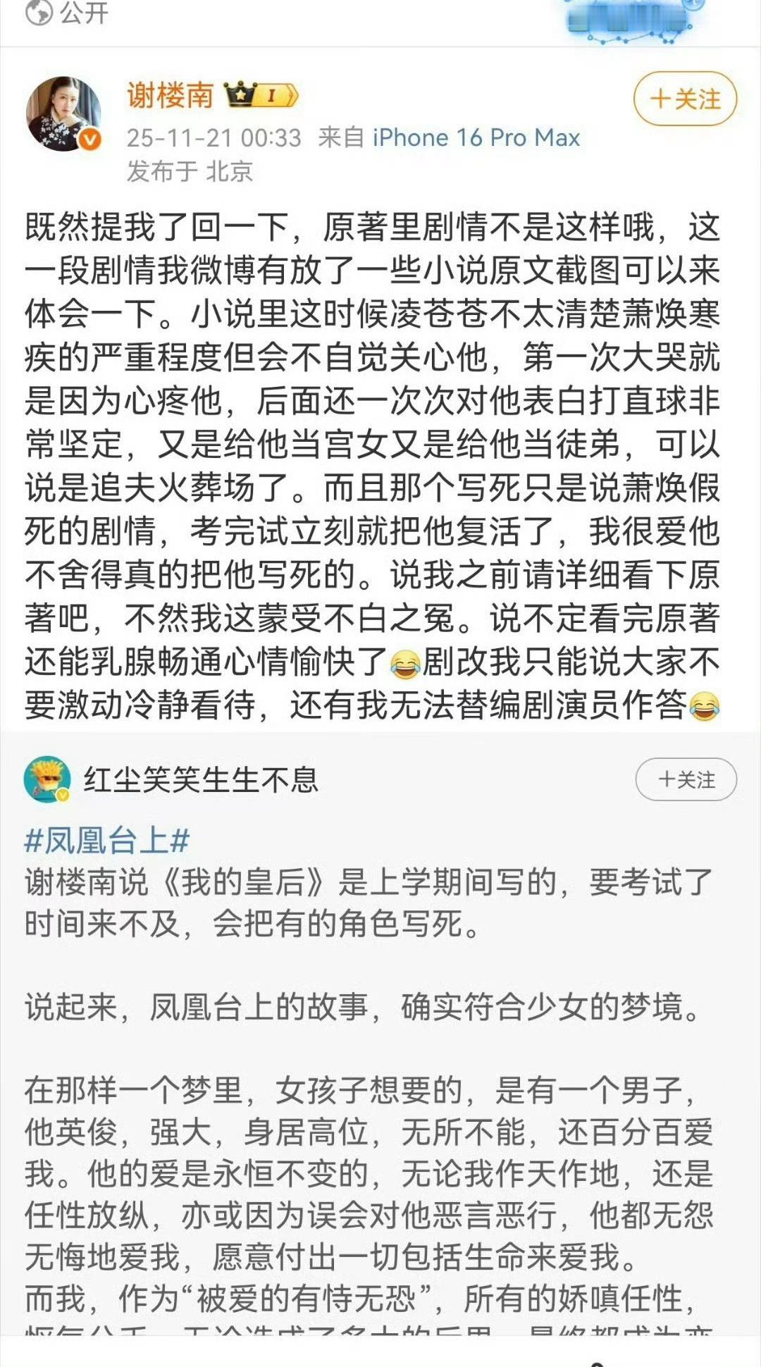 《凤凰台上》原著作者发完关于角色的逆天言论后又发了好几条