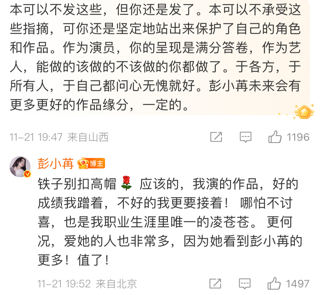 彭小冉能这样站出来发长文回应还挺刚的,凤凰台上一眼就不是那种前后期认真筹备、努力