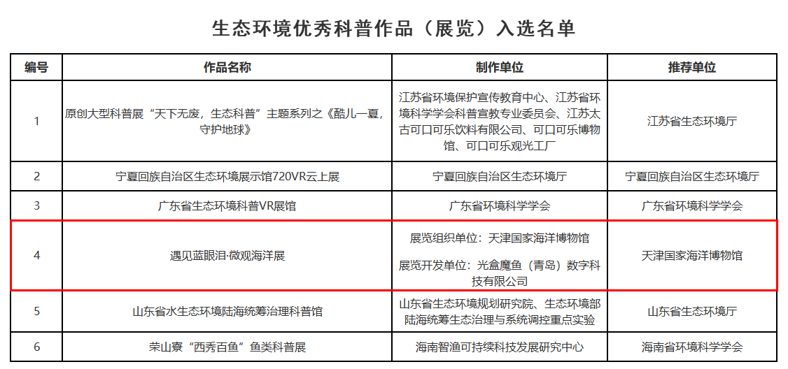 在生态科普领域,《遇见蓝眼泪·微观海洋展》凭借创新表达脱颖而出。该展览以“微观视角看海洋”为切入点,通过高科技互动装置、微距摄影作品等形式,生动呈现海洋微生物的奇妙世界,将专业生态环境知识转化为公众可感可知的科普体验,最终从全国众多申报作品中突围,入选中国环境科学学会组织评选的优秀科普展览名录。此次评选共产生优秀科技成果科普化典型案例8个、优秀科普图书17部、优秀科普展览6个等多个类别的奖项。国家海洋博物馆的入选彰显了天津在生态环境科普领域的硬核实力。