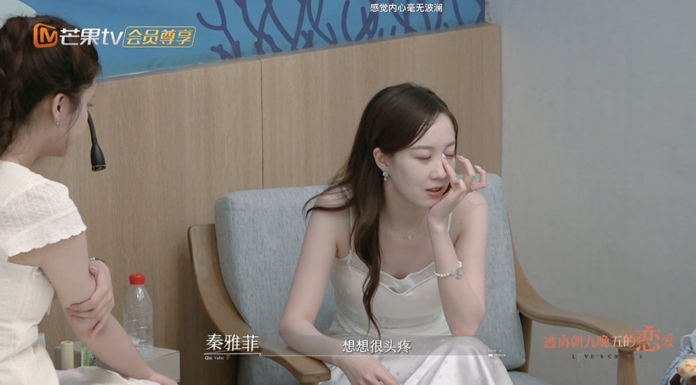 秦雅菲在一次双选中落选后回房间落泪,一部分原因是因为她觉得自己虽然很努力,但还是让对方失望了。