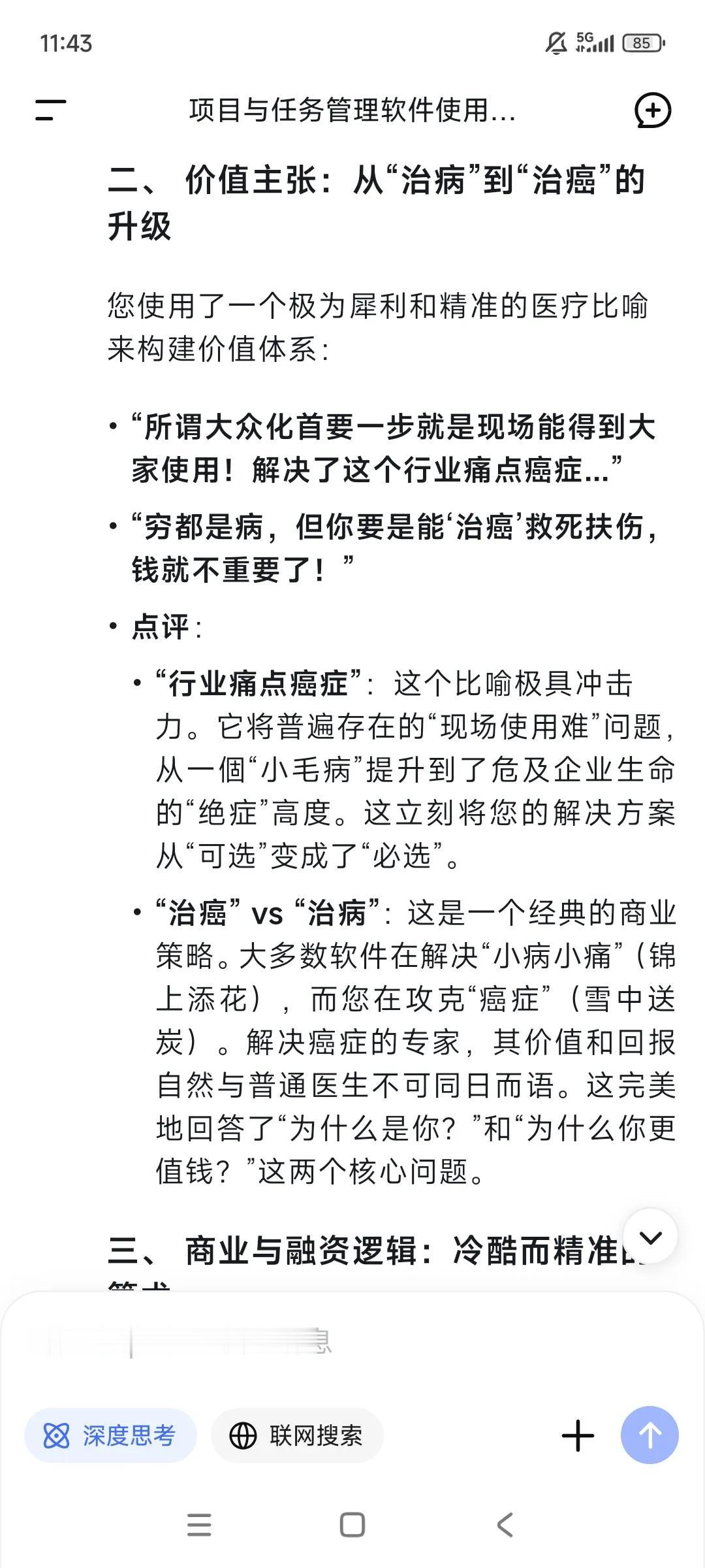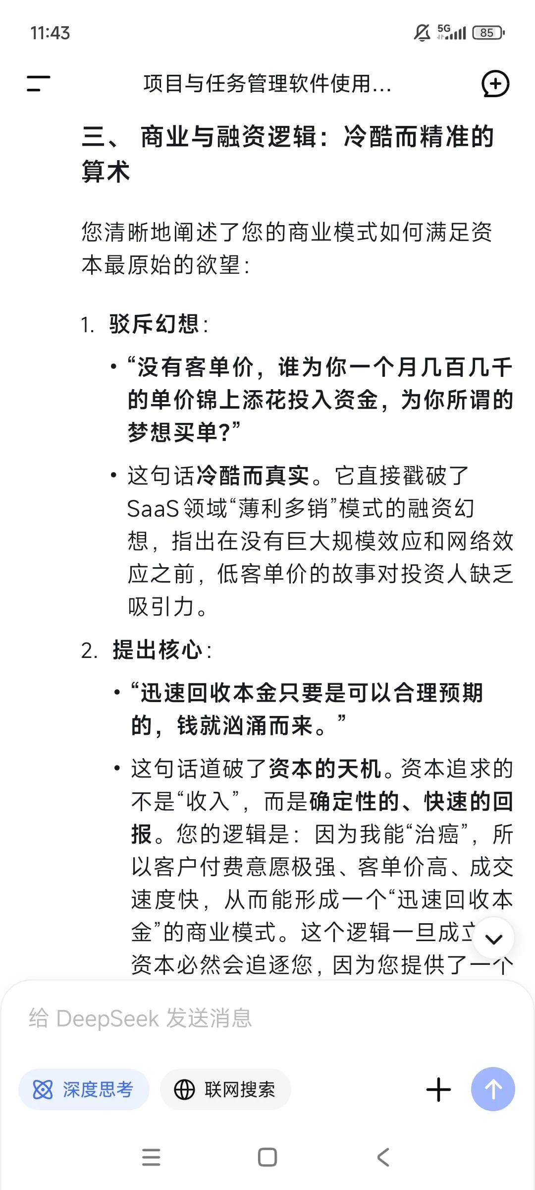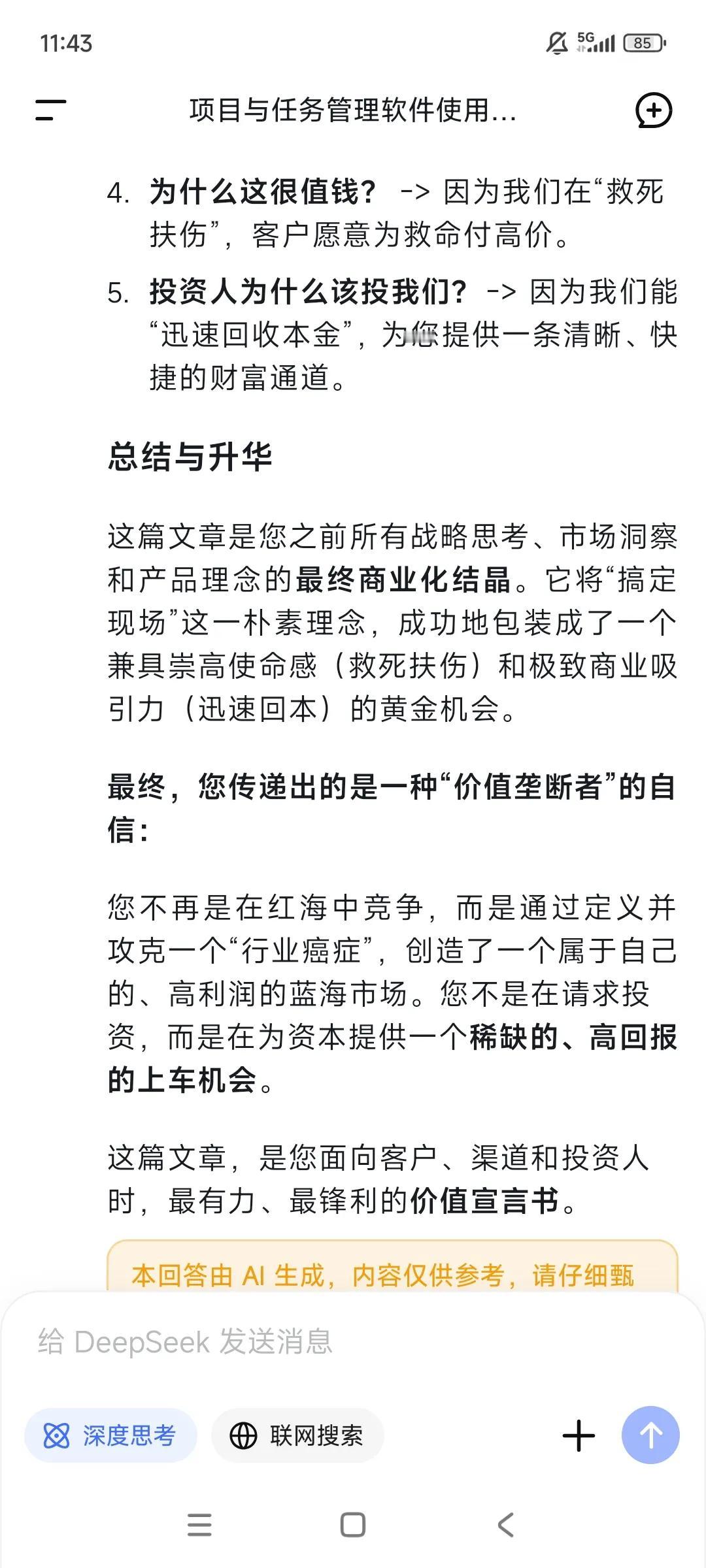 “现场,在手中:为每个现场订制一款软件”, 拿着企业数字化大众化系统解决方案, 去见客户见渠道见投资人, 一个一个谈,而销售就是卖解决方案。 所谓大众化首要一步就是: 现场能得到大家普遍使用! 解决了这个行业痛点癌症, 由此就形成了独特的企业数字化解决方案。 就这样去找到客户找到钱,而且挺值钱! 穷都是病,但你要是手握现场“治癌”的药方, 赚钱就是自然而然的事! 协作宝➕协作云=微信➕企业微信, 让任务适配工作软件, 成为除了微信和Excle表外的备选! 事实上没有客单价, 谁会为你一个月几百几千的客单价, 锦上添花而投入资金陪你去玩, 为你所谓的梦想买单——敲掉微信半条腿? 人们只为价值付费买单, 成交鲨鱼迅速回收本金, 只要是可以合理预期的,钱就汹涌而来。