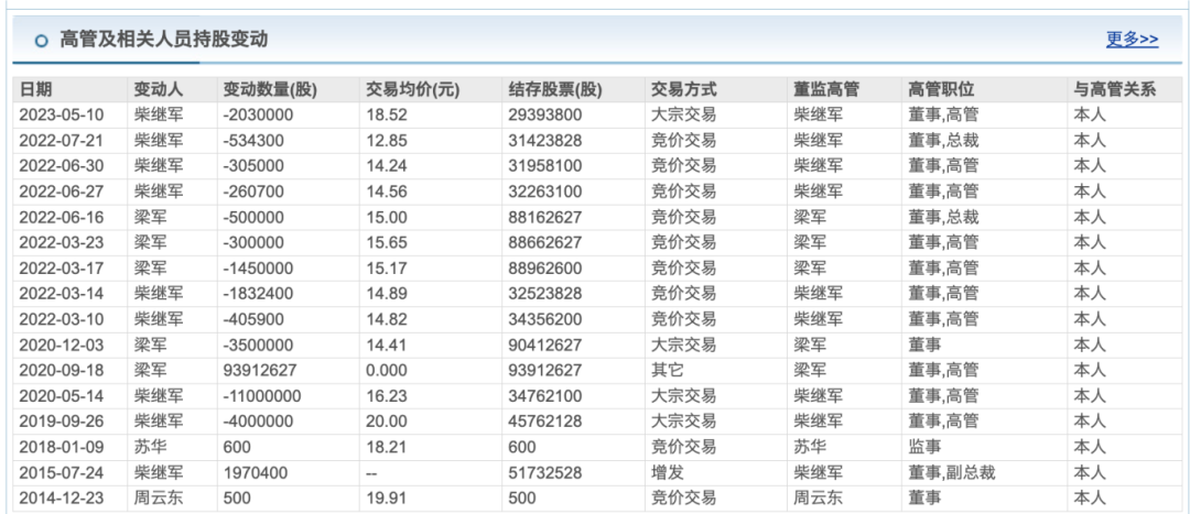 3、对于创始人柴继军来说,早就无比成功了,柴继军经过多次减持,已经变成第四大股东,现在是公司总裁和职工代表董事,创始人梁军减持成第二大股东,并且已经移民美国