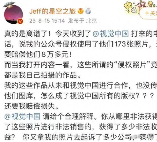 2、这个案子的来源是视觉中国的商业模式,不断给个人和自媒体等发函要钱,当事人接到电话发现自己的版权被要求8万元。后来大家发现连中国国旗等成了它的版权,这家公司被万众痛打!不过,这公司既然挺过来了。