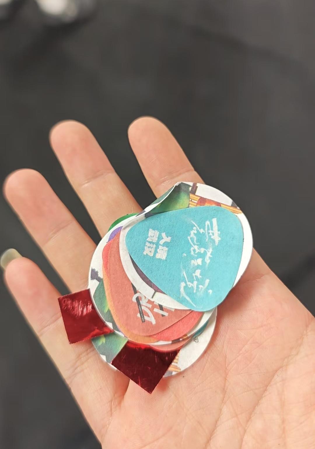 有歌迷在昨晚亮哥内场捡到了生哥的彩带! 哇哦,这就是“父母爱情”吗。 楚生的“荒芜之境”武汉场过去两周了,有歌迷竟然在昨晚亮哥的演唱会内场捡到了“荒芜之境”拨片彩带! 那种发自内心的喜悦已经溢出了屏幕,太幸运了。 同样的事情,还有歌迷在昨晚苏醒的演唱会上捡到了虎子演唱会时的彩带,这也太巧了吧!