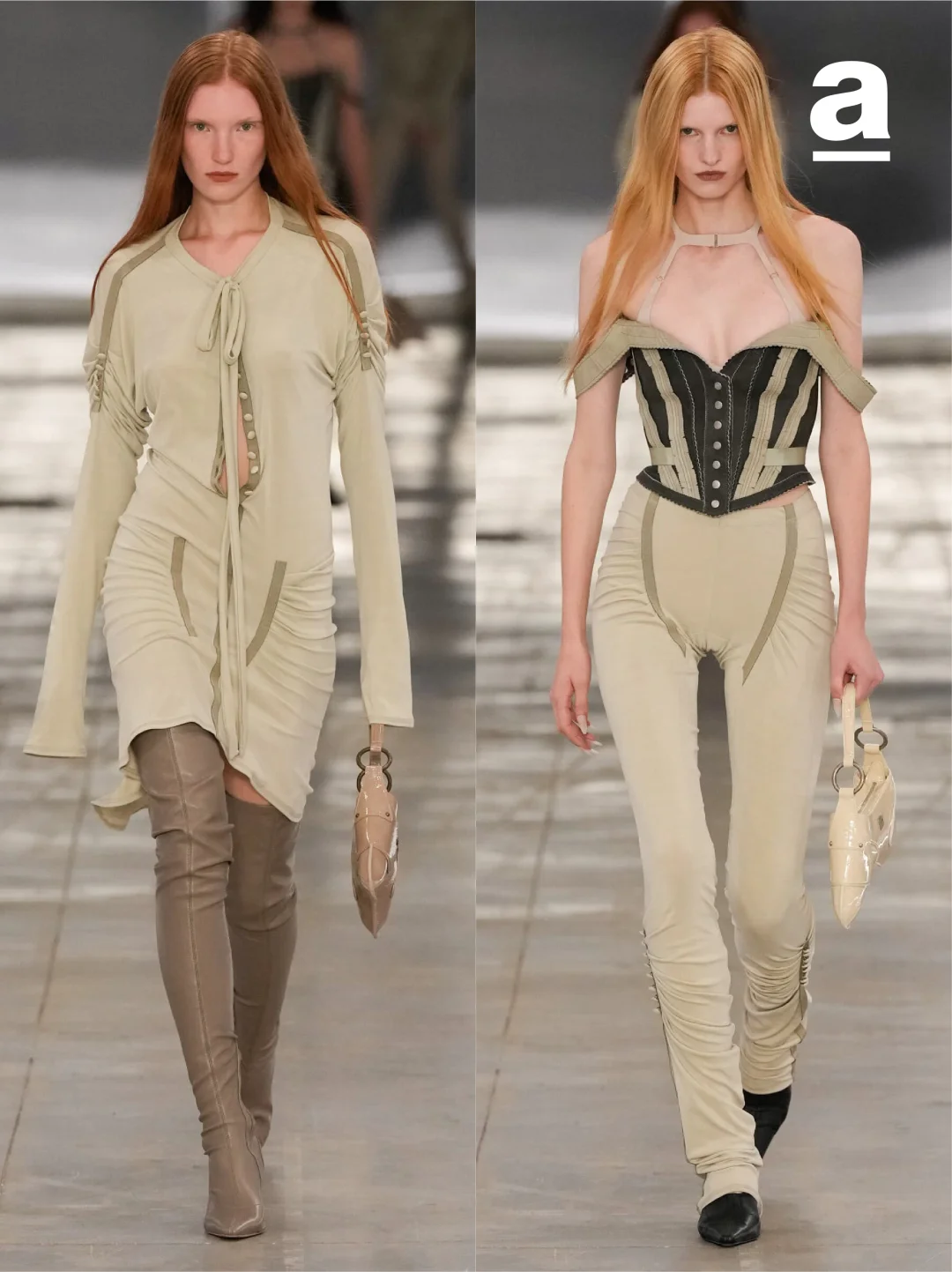这场米兰首秀对Knwls而言,是一次“摆脱重复、接触新受众”的战略突破。两年半的精心筹备,让技术创新不再是表面点缀,而是深度融入品牌美学的核心支撑——Flyknit 技术让紧身胸衣焕发新生,3D 针织工艺让雕塑感廓形更具实穿性,反光面料让标志性风格适应更多场景。同时,品牌从未偏离核心基因,将复古与未来的碰撞等标志性元素,描绘得立体鲜活。