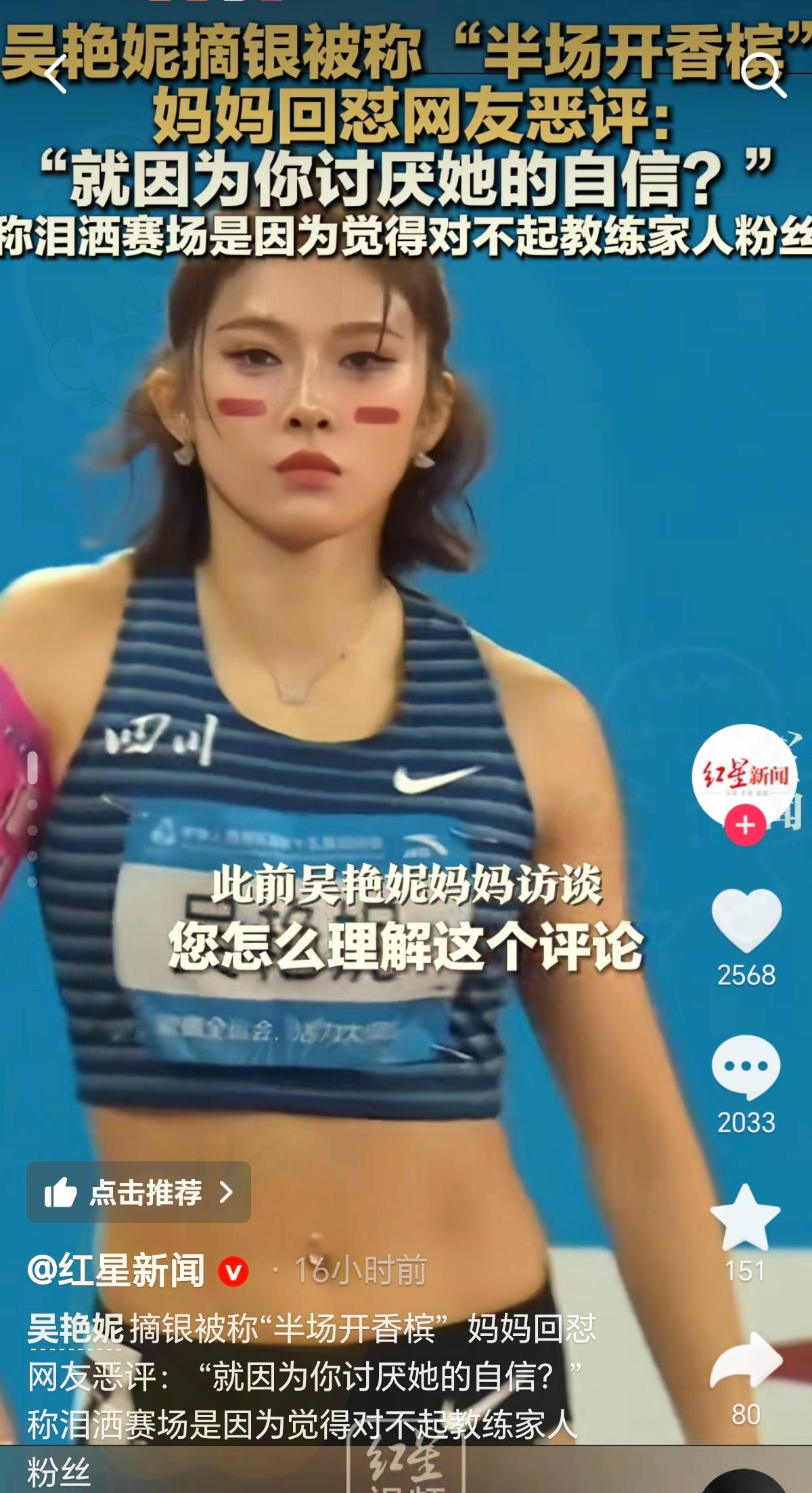 真搞不懂为啥吴艳妮拿银哭了,就有一堆人追着嘲讽,还好她妈妈敢站出来硬刚,这话怼得太解气。谁规定运动员输了就不能哭,赛前喊冲冠就是高调,难道非得藏着野心才算谦虚? 吴艳妮四年练下来,二十多次跑进13秒,实力摆在那,想拿冠军本就是理所应当的事,这份自信根本不是自负。输了0.04秒她自责落泪,赛后还第一时间拥抱冠军,没半点输不起的样子,网友凭啥揪着不放。 说白了很多人就是见不得女生敢把野心摆出来,把自信当罪过,赢了夸霸气,输了就踩狂妄,双标得离谱。运动员的付出不该只靠输赢评判,敢拼敢说本就该被尊重。 你们觉得吴艳妮的自信真的算高调吗?换作是你,有实力会不敢喊出夺冠目标吗?吴艳妮写真 吴艳妮