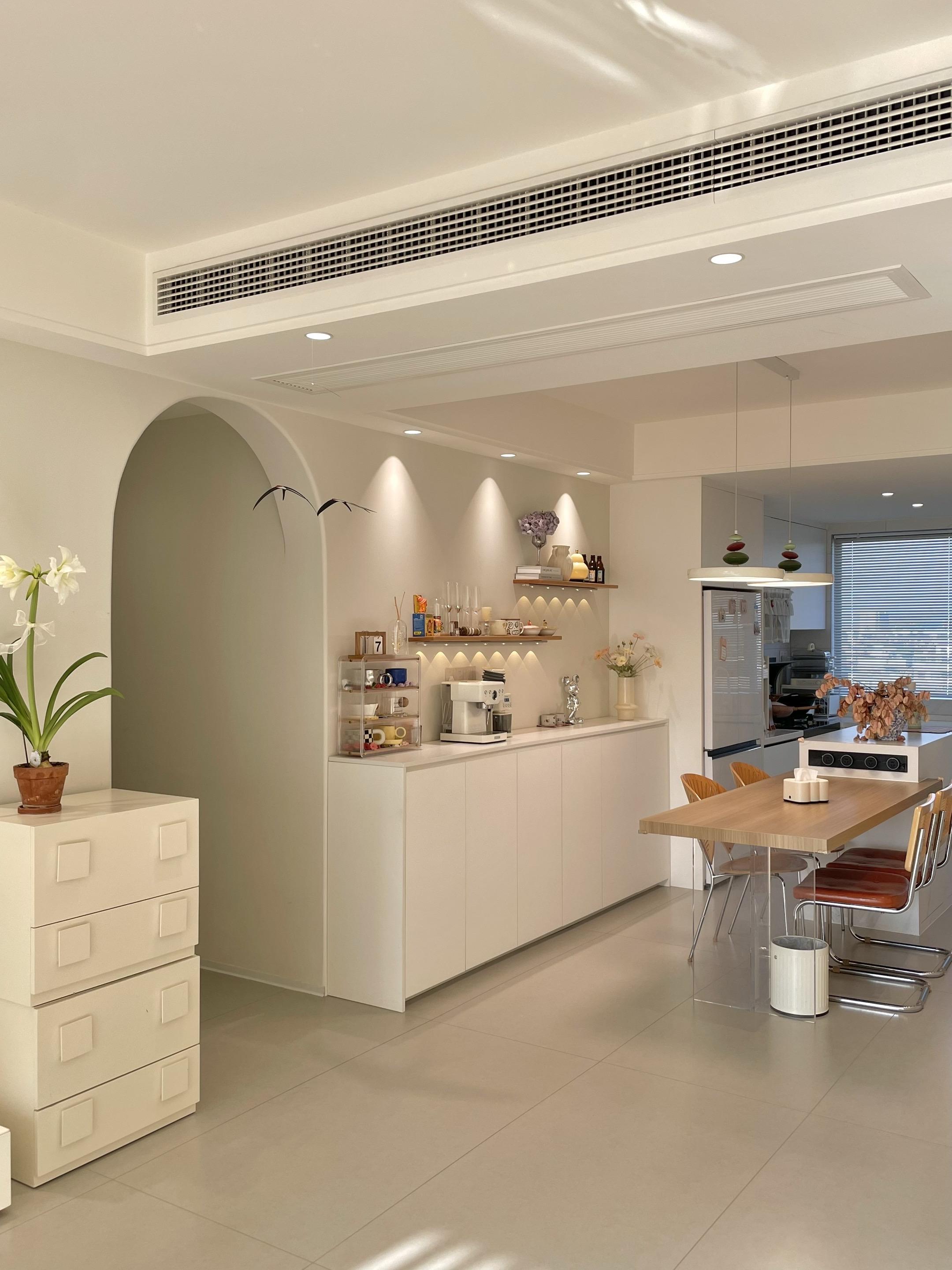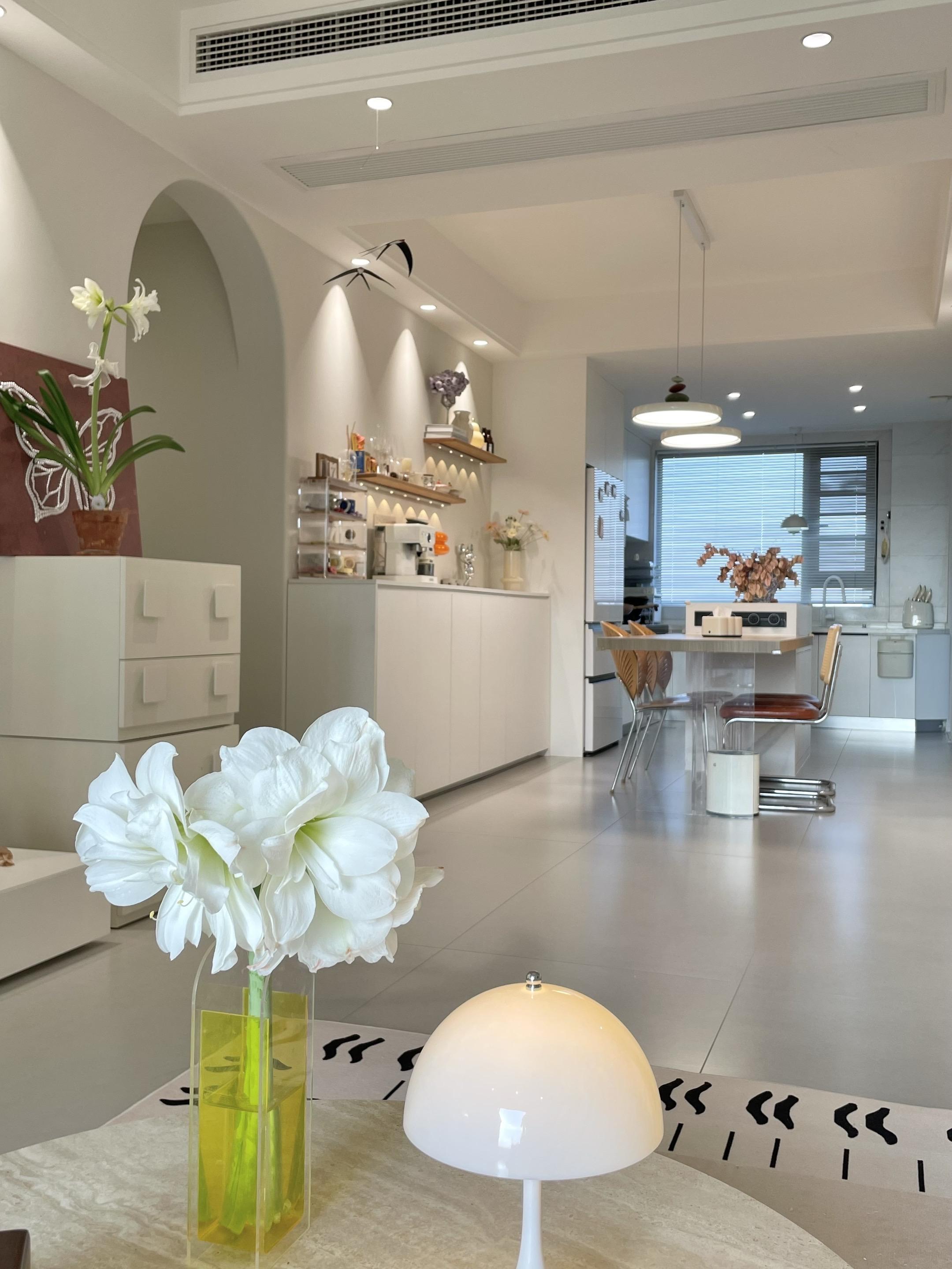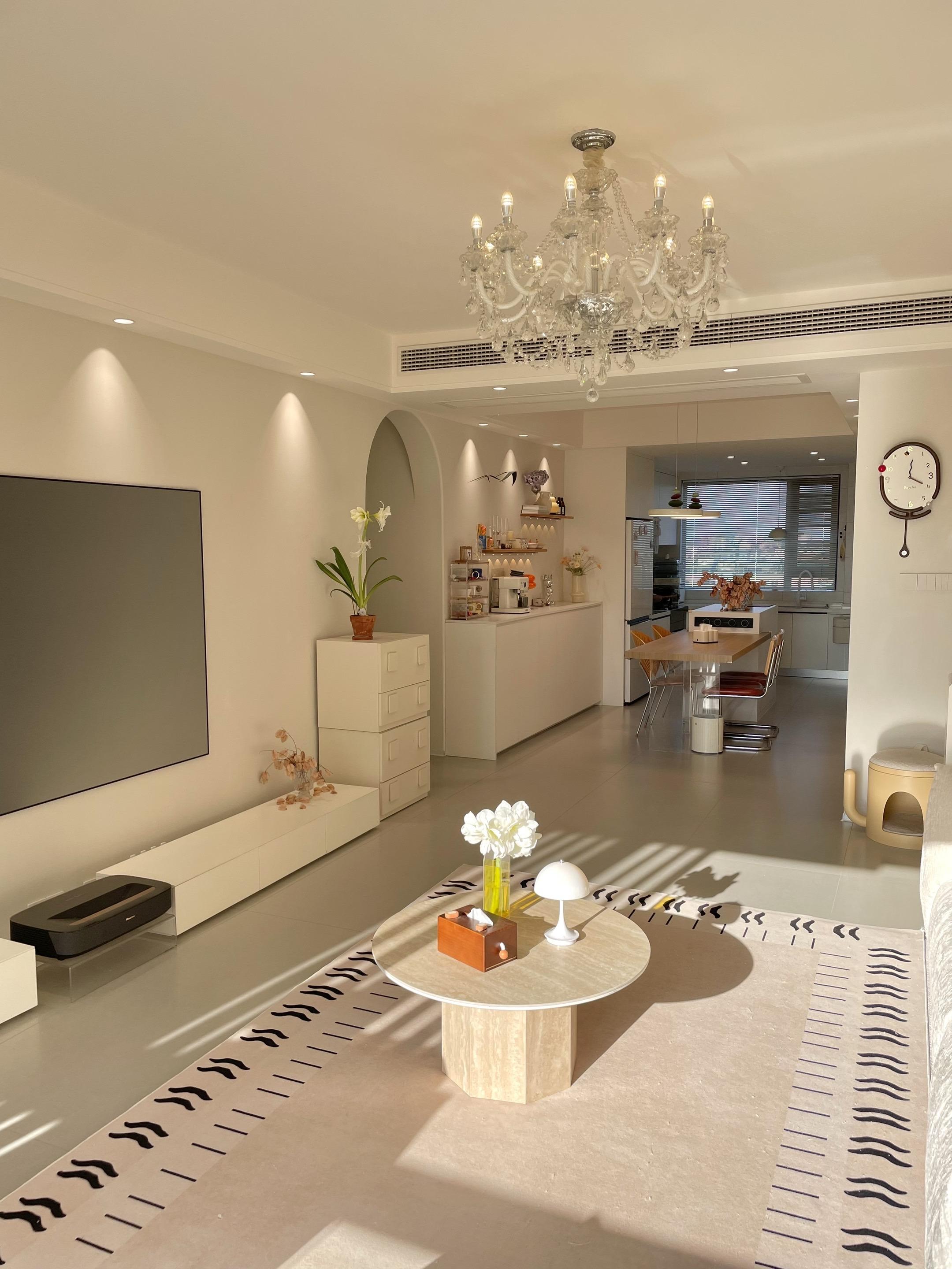 真的104平,小户型这样装真的显大舒适!建面128平,套内104 秋冬的阳光照进客厅,真的温暖又舒适~ 🏷️客厅 打通阳台隔断,直接封落地窗,客厅面积增大 不做背景墙设计,直接刷浅色系乳胶漆,简约明亮 通铺浅灰色柔光砖,不显暗层好打理 🏷️餐厅 打通隔断做开放式,中间放餐岛一体 做半高餐边柜,适当空间留白,空间显大不压抑 全屋以浅色系为主,阳光照进客厅,整个房间变得温馨又温暖~
