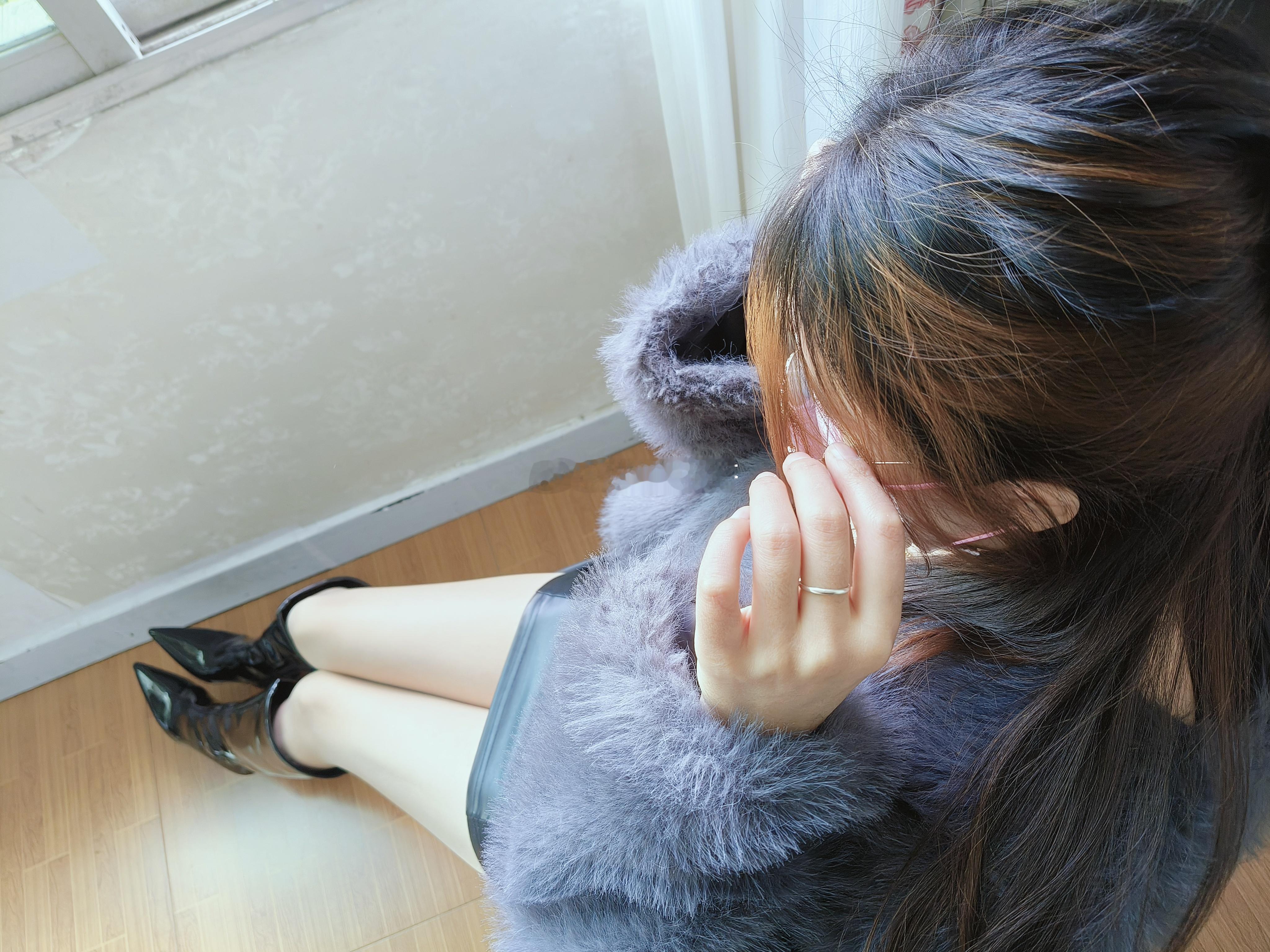 今日穿搭:毛绒外套配黑色长靴,保暖又时髦。