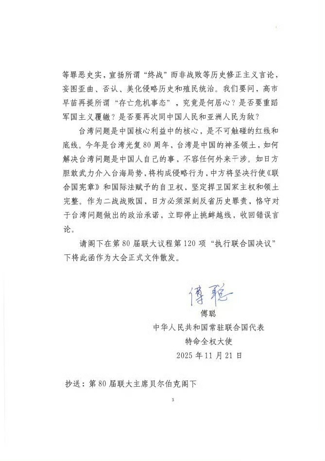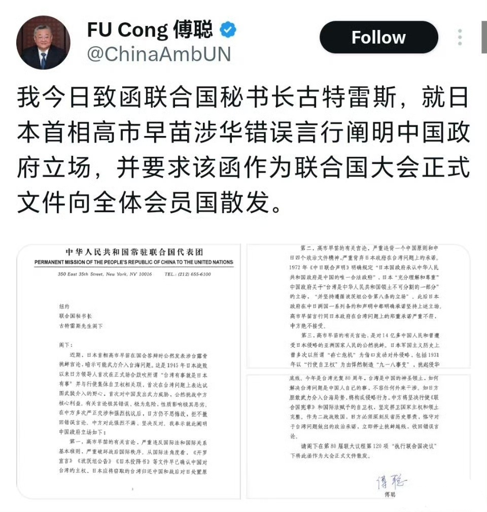 中国已经正式通过联合国向全体193个成员国下国书了,就是告诉全世界:支持“一个中国”的就不要搞事不要乱讲话,不支持“一个中国”的如果要往中国的枪口上撞,那就不客气了!这等于是给日本下通牒了。但这个还不是最后的通牒,咱们会慢慢往死里熬日本,逼着霉里贱出场直接跟霉里贱或者霉日同盟干,如果霉里贱就是不出场,那就彻底熬死日本,把它当成全世界跟中国对着干的一个样板!