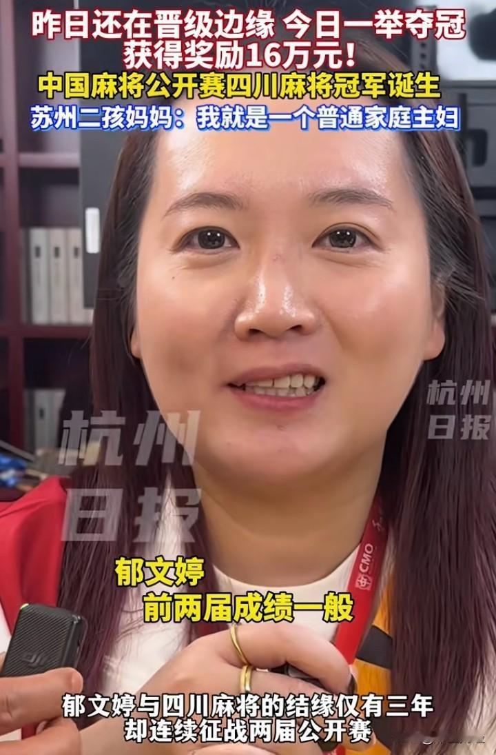 打麻将,能够打出这样的精气神,还能取得冠军并获得奖励16万元,恐怕只有中国的二孩
