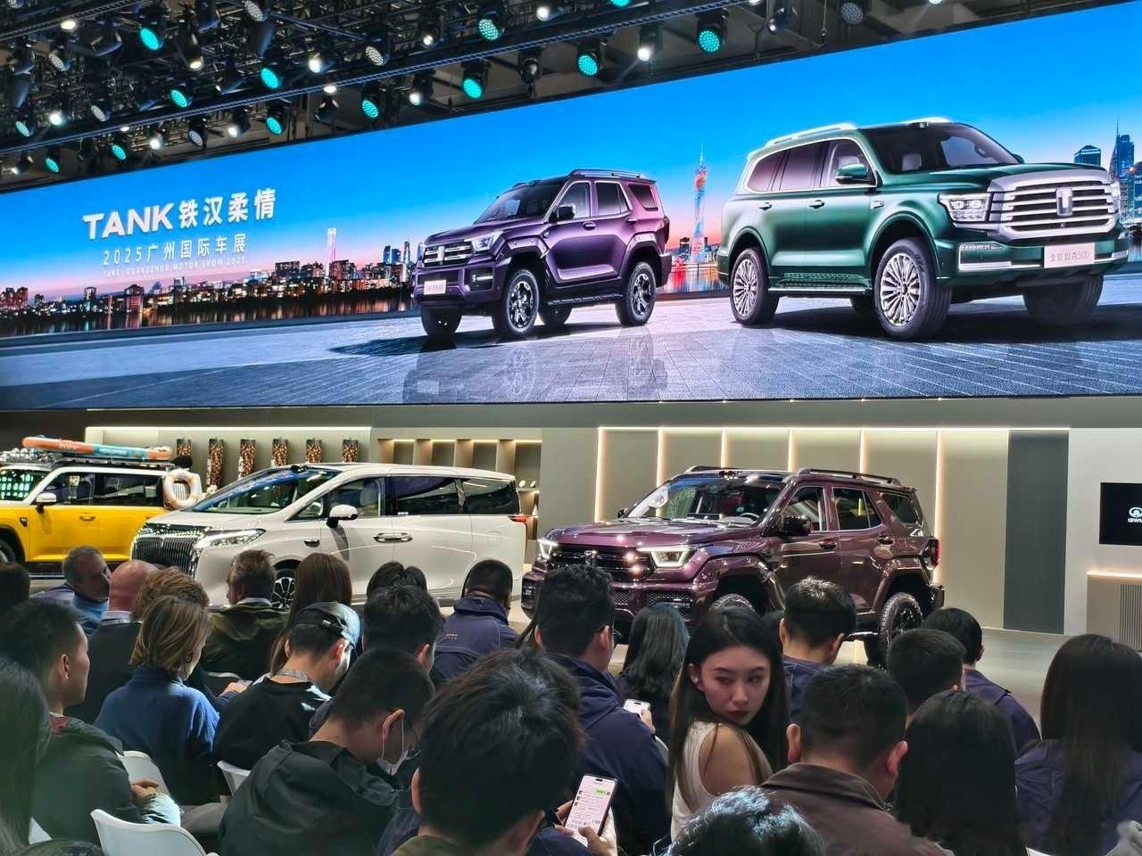 坦克这次在广州车展带来了坦克300极地版,限量300太!提供2.4T柴油高性能发动机和2.0T汽油高功率发动机两种动力选择。直接配齐了AT全地形越野轮胎、9500磅无线遥控绞盘等极境专享装备。座椅上还特别刻了南极坐标,细节做的还挺好!另外,坦克400和500分别推出了“敦煌紫”和“敦煌绿”配色。两款设计都挺有想法,你们喜欢吗