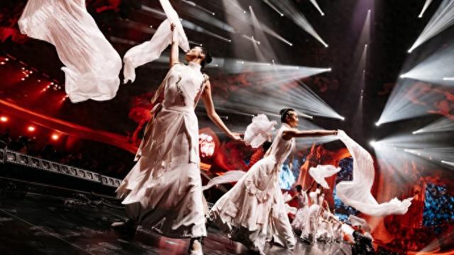 其中,“纸上幻境”舞台以“纸”为灵感,宛如一幅徐徐展开的东方卷轴,整体由45米伸展舞台、1032盏移动灯具及374平方米全新LED墙共同构成。所有文字与纹样均由艺术家亲手绘制,保留手作温度。绚烂灯光映照于展开的书页之上,令中国四大发明之一的纸张之美,平添一抹现代科技的色彩。