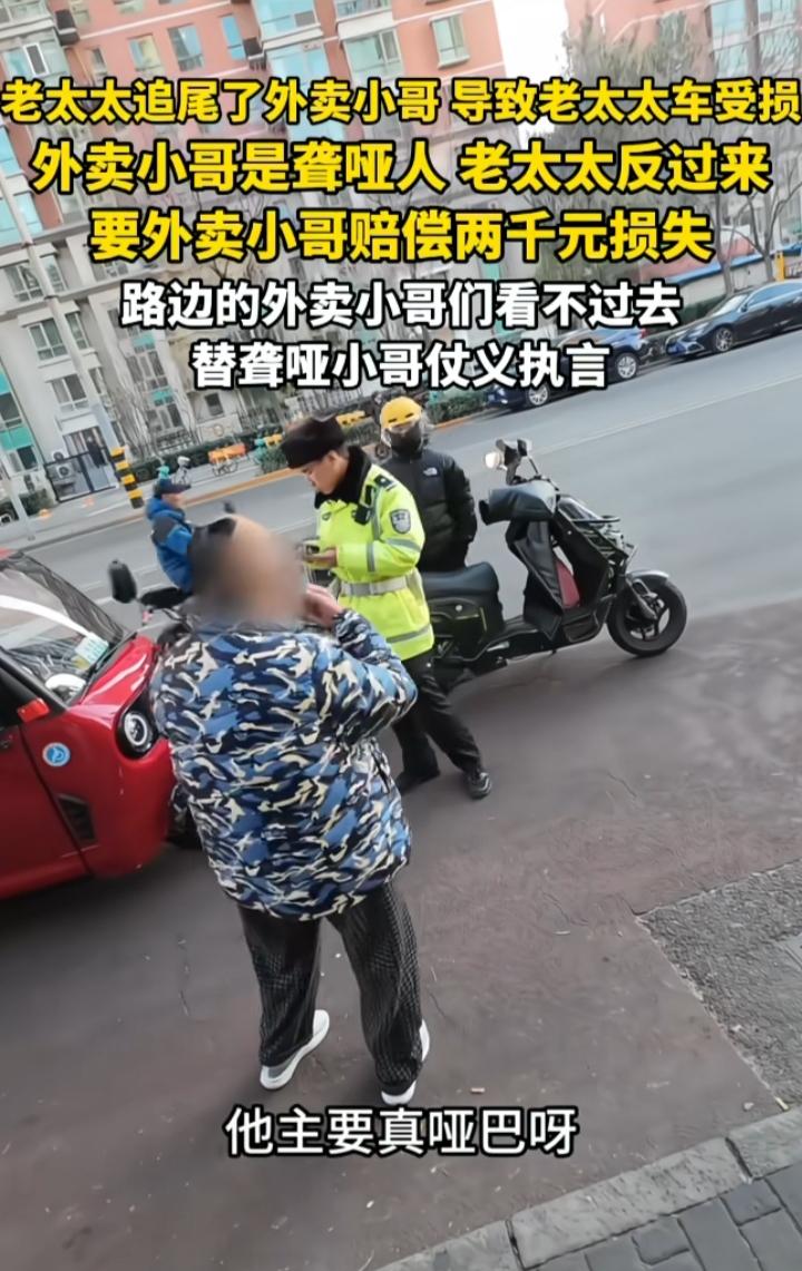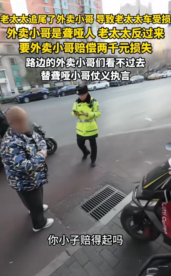 聋哑人不能送外卖吗?老太太追尾外卖小哥,发现对方是聋哑人后立问他要2000块,原
