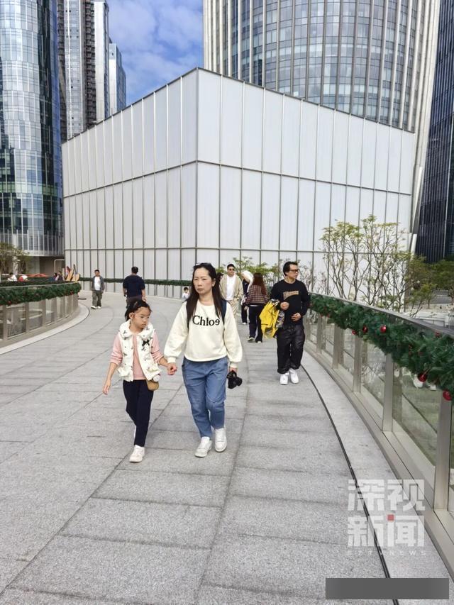记者在现场了解到,深圳湾文化广场成为了不少游客周末休闲的热门打卡地。