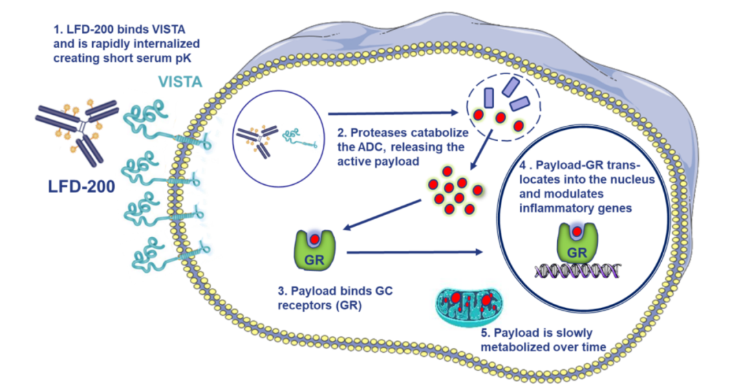 除此之外,正如文章开头所述,或许VISTA会是自免ADC未来的一个不错的靶点,VISTA独特的生物学特性,例如其快速内化和细胞内积累,使其成为ADC疗法的理想选择。Lifordi的主要ADC候选药物LFD-200的临床前研究表明,该药物具有血清半衰期短、免疫细胞内停留时间长以及能够在这些细胞内长期发挥免疫抑制功能,且不会产生全身给药相关的毒性。