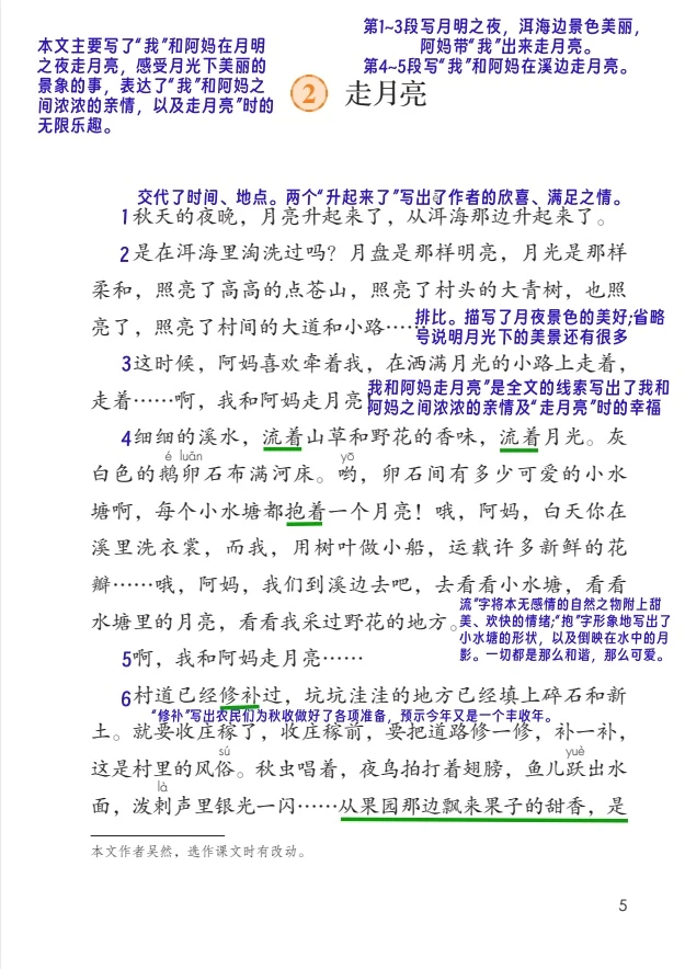 四年级《走月亮》课堂笔记