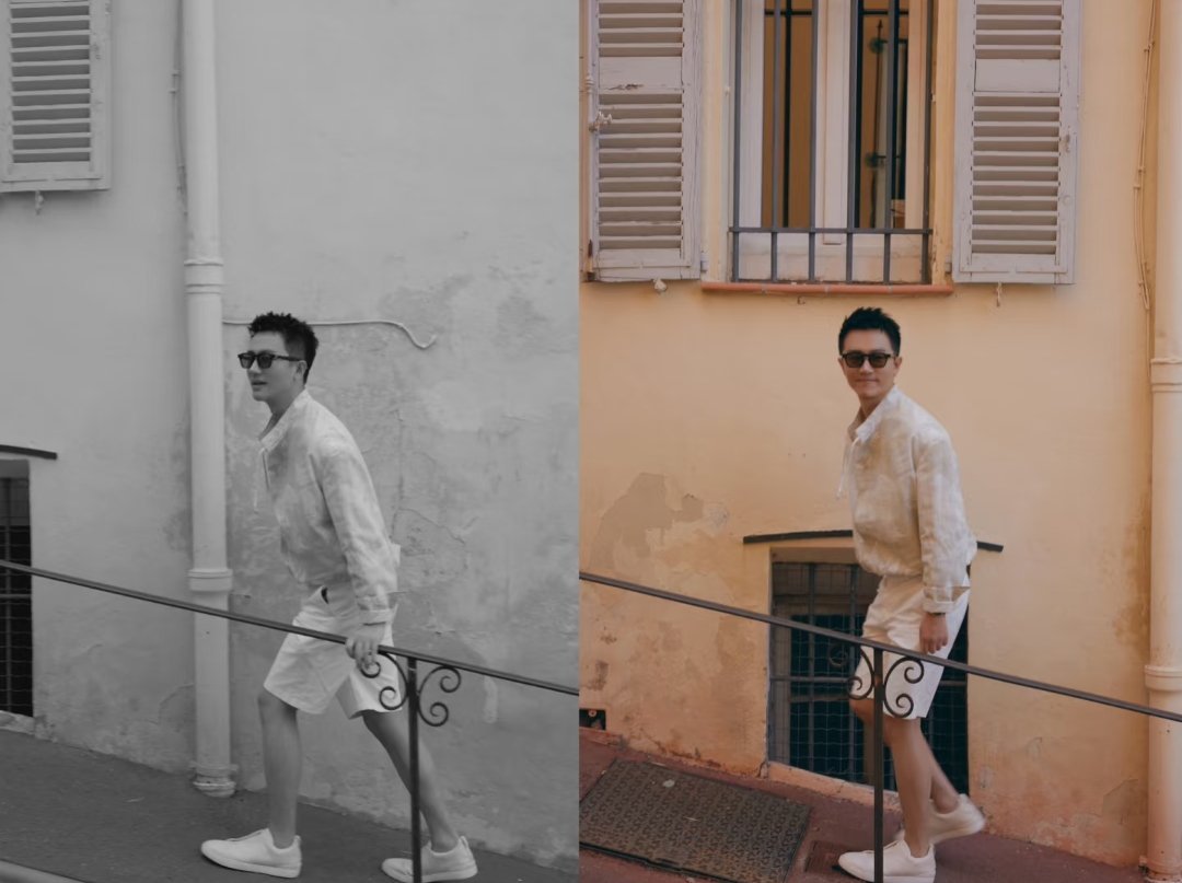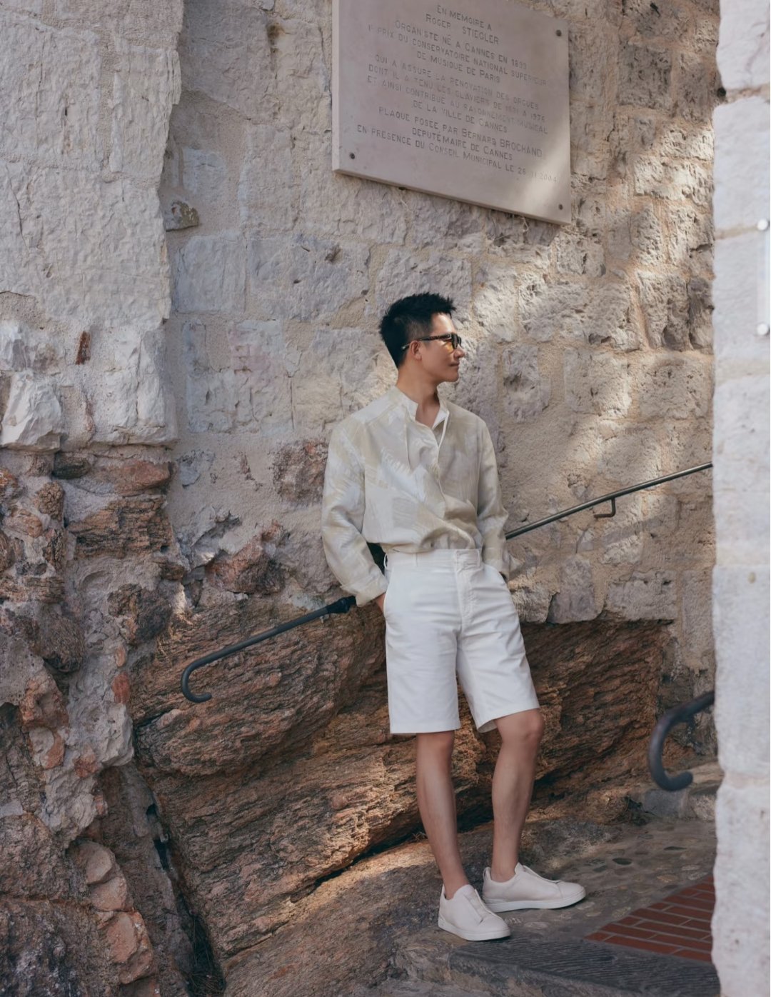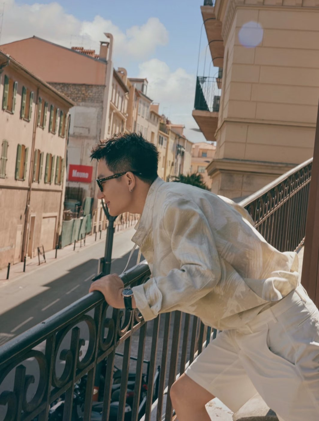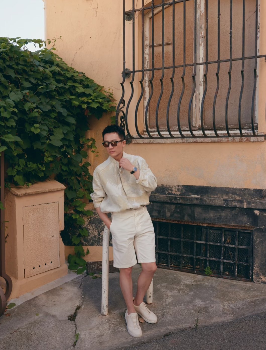 黄轩日常穿搭,墨镜+立领衬衫+短裤~“旧照新发🤫有点想念夏天…”