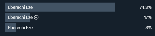 投票显示,1号埃泽的支持率最高,二号只有17%,三号埃泽则仅获得8%的选票。