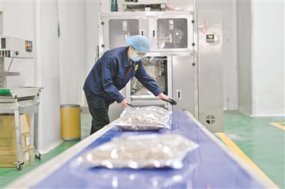 11月23日,在巴彦淖尔市国家农高区李牛牛食品科技股份有限公司,工人们加紧赶制出口葵花籽订单。今年以来,巴彦淖尔市临河区生产加工的高档坚果、鲜辣椒等农产品畅销海内外,1至10月,进出口总额实现25.66亿元,同比增长29.07%。