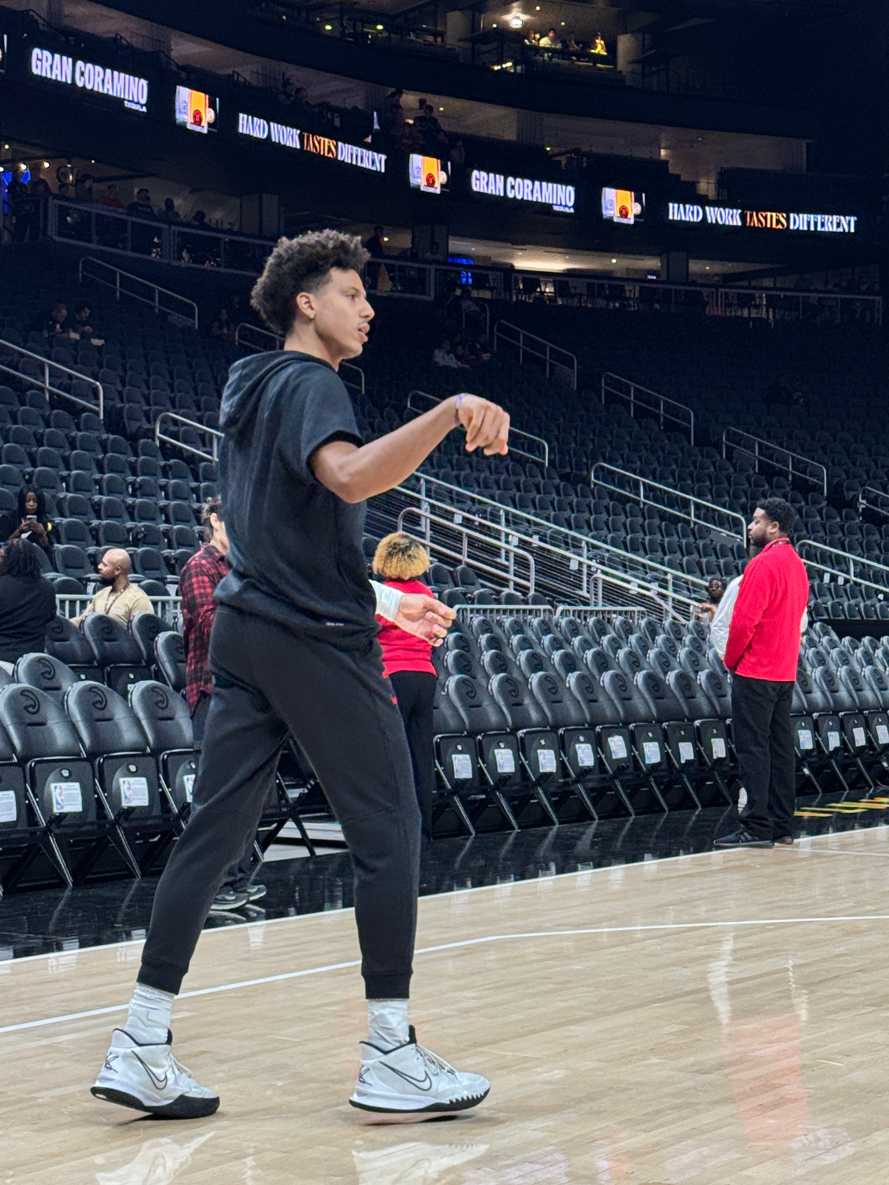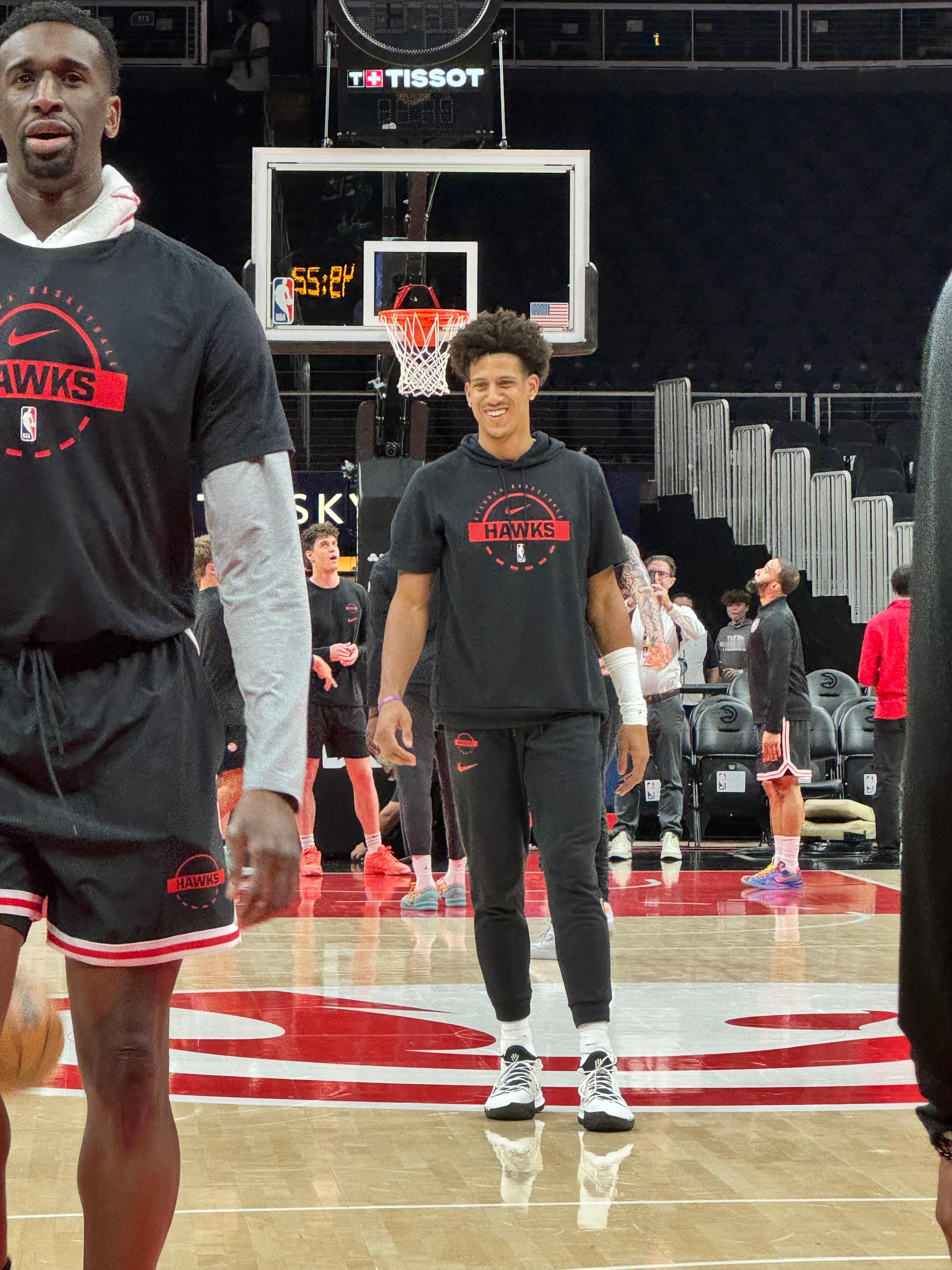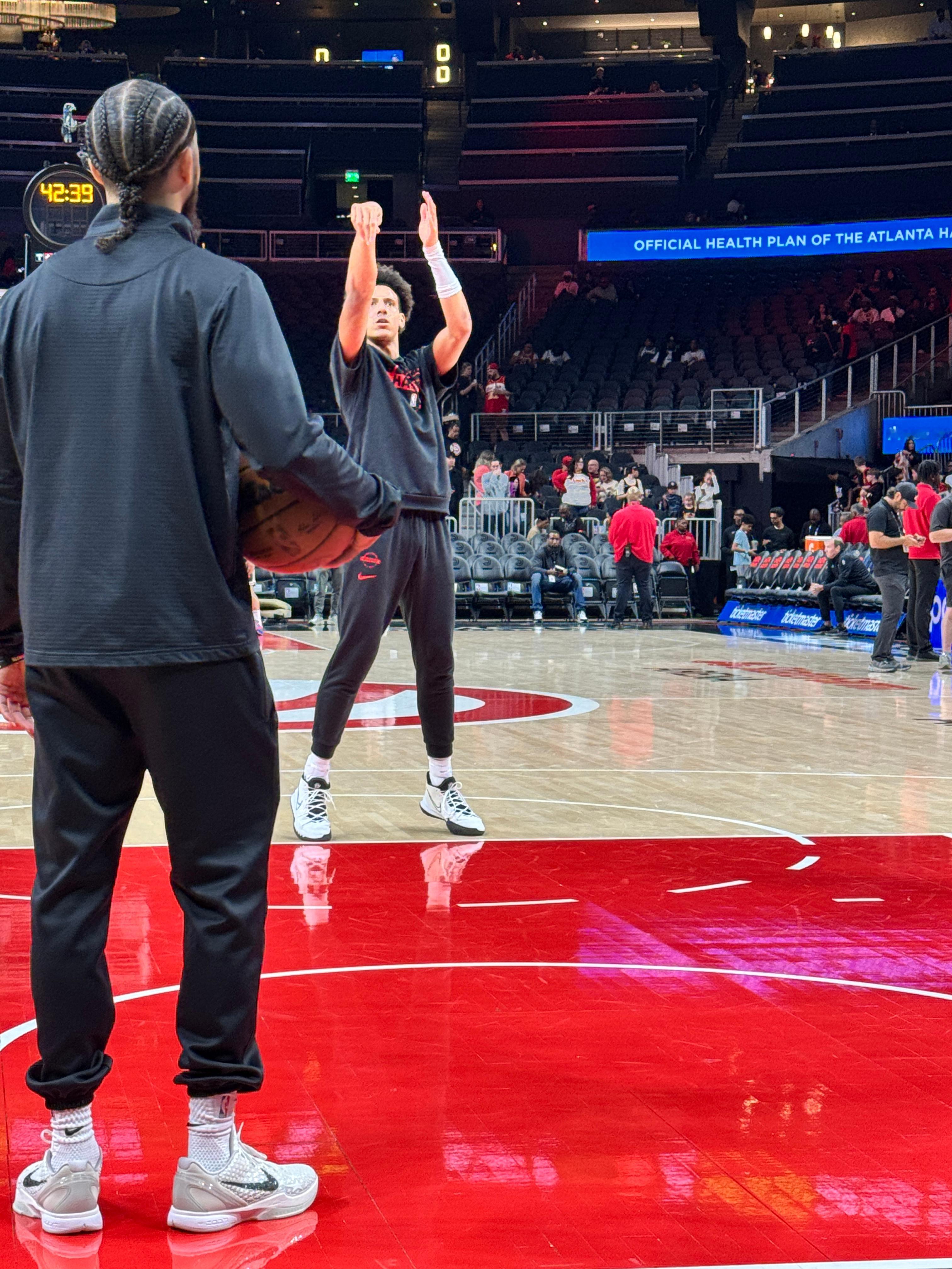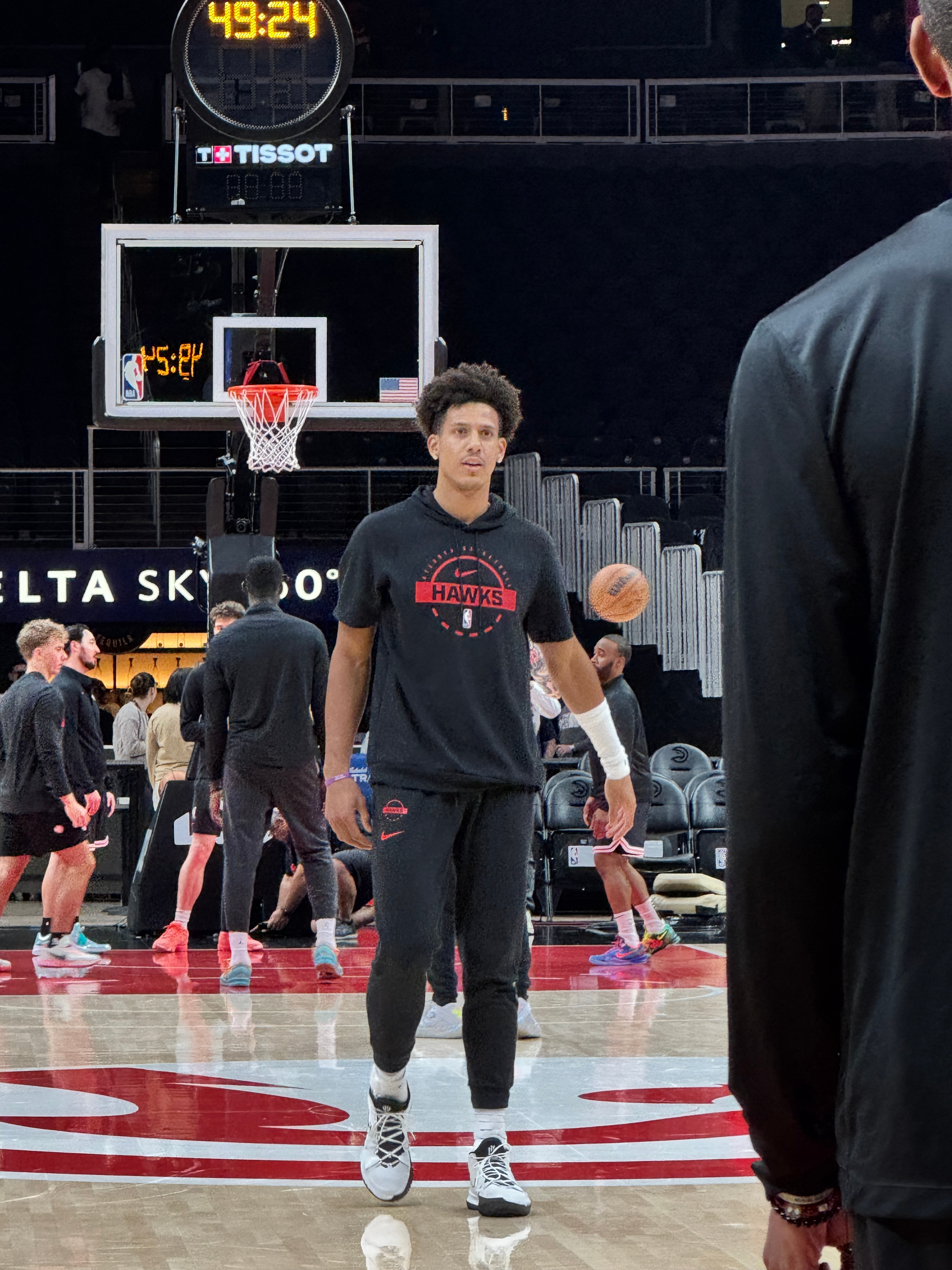 前方报道半场时间补一下赛前JJ热身的照片 //
