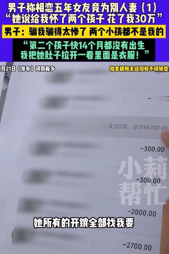 “2025年最悲催的男人!”河南新乡,女友怀孕14个月孩子都没出生,男子纳闷,难道自己女友怀的也是“哪吒”?他忍不住把女友的肚子拉开一看,里面居然是衣服!更离谱的是,男子发现相恋五年的女友,竟然是别人的妻子,两个孩子都不是他的!   2025年河南新乡,张先生成了街坊邻里议论的“倒霉蛋”,跟女友处五年,砸进去30万,最后发现自己活成了笑话。   2020年俩人认识,确定关系后张先生总带她逛街买东西,转年女方说怀了,要回家养胎,他立马转过去4万生活费,之后他去外地打工,一门心思挣钱养“老婆孩子”。   可怀到七八个月,女方突然说孩子缺氧不行了,拦着不让他回家看,他连女方家在哪都不知道,只能干着急,俩人联系慢慢淡了,2022年整年没见面。   2023年初女方又找上门,张先生赶回来复合,住一起那段日子他觉得日子有了盼头,结果没俩月女方说又怀了,结果说是宫外孕流了,他没多想,收拾行李再去打工挣钱。   2024年8月,女方第三次报喜,张先生满心期待当爸爸,可这肚子一天天大起来,拖到2025年10月,足足14个月还没生,他心里犯嘀咕,人家哪吒也才怀三年,这到底是啥情况?   终于忍不住追问,女方支支吾吾说八九个月时孩子没了,自己偷偷剖了埋了,这话彻底戳破张先生的疑虑,争执间他掀开女方衣服,肚子里塞的全是衣服,哪有什么孕相。   他当场报警,跟着民警第一次见到女方父母,老太太一句话砸懵他:“俺闺女2021年就结婚了,俩孩子都生了,”原来女方给的B超单全是P的,所谓的怀孕流产全是编的,更狠的是,亲子鉴定出来,那俩孩子跟他半毛钱关系没有。   五年里张先生每月挣2万,只留点生活费,其余全给女方,亲戚朋友早等着喝他的喜酒,他连孩子名字都想好了,没想到女方拿这些钱还了网贷,一边跟他谈情说爱,一边维系着自己的家庭。   揭穿后女方哭着说,当初跟张先生认识更早,没敢跟爹妈说,后来经人介绍嫁了人,现在后悔了,还提议每月还几千,甚至说愿意离婚跟他过,要是不行就一辈子不嫁。   可张先生只剩心寒:“早说开我兴许还能接受,这么骗我太狠了,”他怀疑女方和她老公合伙设局,女方死活不认。   现在张先生已经报警,律师说了,隐瞒已婚事实骗钱,金额大还不还,这已经涉嫌诈骗,可能要负刑责。   这事儿听着荒唐,却藏着真人心酸,张先生掏的是真金白银,付的是真心,最后落得人财两空。   那些编造的怀孕谎言,藏着的全是贪婪,感情里最忌欺骗,一旦掺了假,再圆满的期待也会碎成渣。