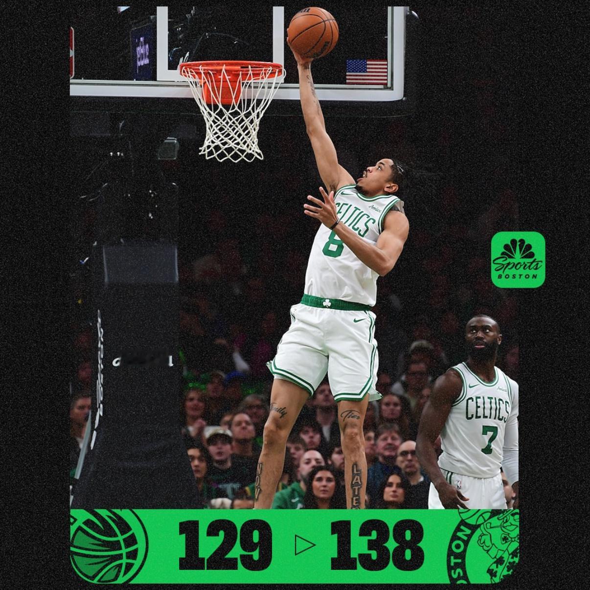 138-129 ! Celtics Win ! 波士顿凯尔特人队主场击败奥兰多魔术队 ! 常规赛战绩【 9-8 】 ☘️ 💚 🏆球员数据 :Jaylen Brown 35分4篮板8助攻Anfernee Simons 23分5篮板2助攻Payton Pritchard 19分5篮板8助攻Derrick White 16分7篮板5助攻Josh Minott 16分7篮板1盖帽Sam Hauser 14分1篮板Neemias Queta 6分2篮板Jordan Walsh 5分3篮板2助攻Baylor Scheierman 2分1篮板1盖帽Hugo Gonzalez 1分1篮板2助攻Chris Boucher 1分1抢断1盖帽