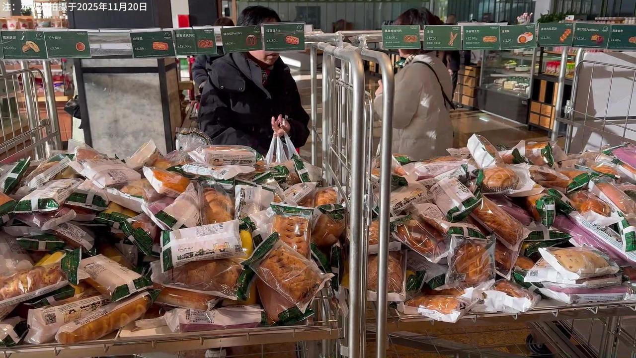 早就听说呼和浩特有家面包工厂店,全国独一份!地铁2号线百合路站A口出来就是,00后来打卡啦。 一进门就被震撼到,空间超大,东西多到挑花眼。没有明显分区,得自己慢慢逛,不过价格超惊喜——都是6折!现在是早上8点半,人已经不少了。 推荐买临期面包,比如碱水结保质期3天,大列巴20天到期,店里卖40多的现在实惠多了。店员说早点来能选到更新鲜的日期,我和奶奶各挑了些,消费58块8,原价97块8,省了近40块。 最戳我的是这里不仅划算,还很环保,回收各门店的临期面包低价卖出,避免浪费。停车也方便,适合周末和家人一起来逛。