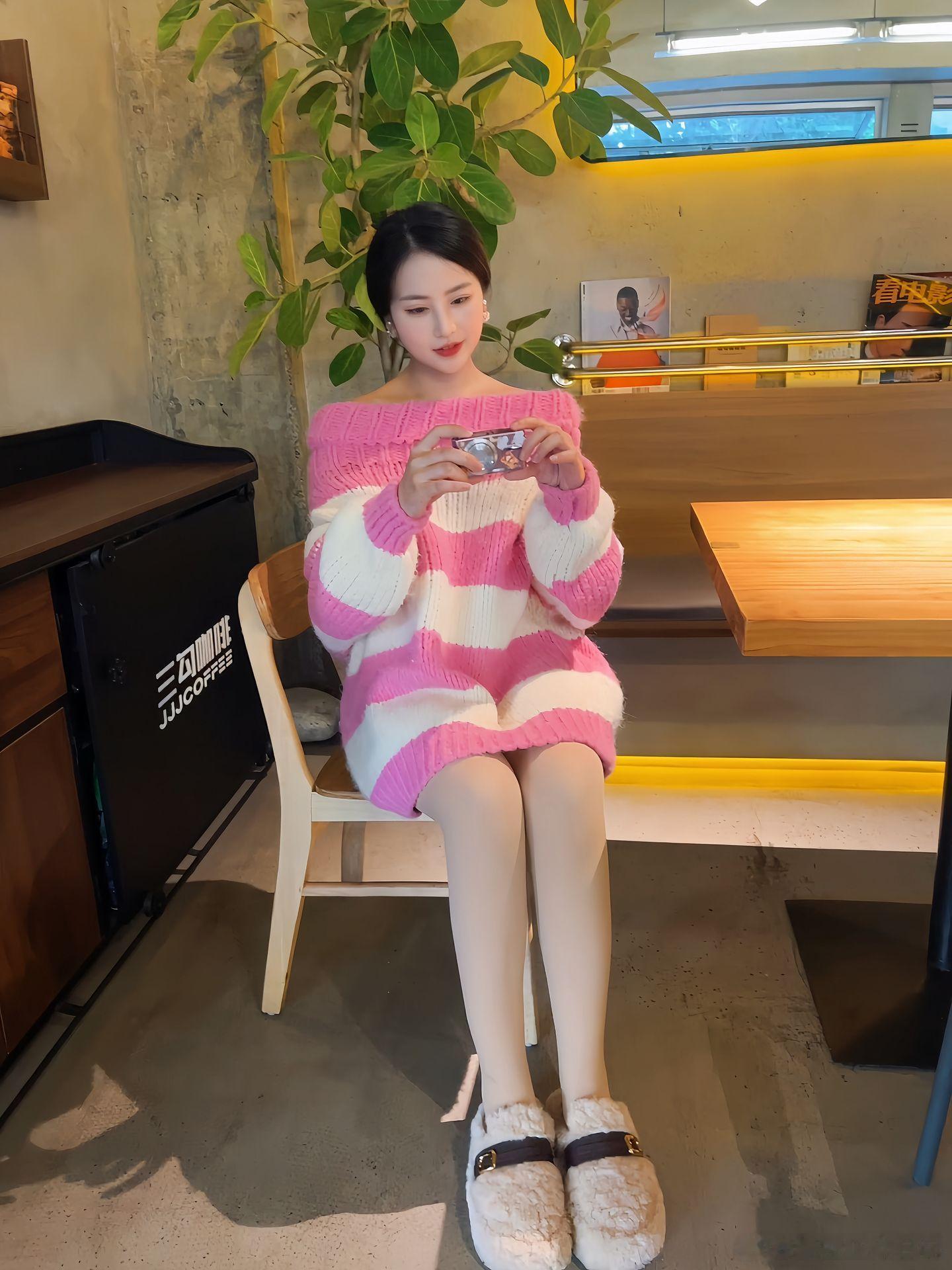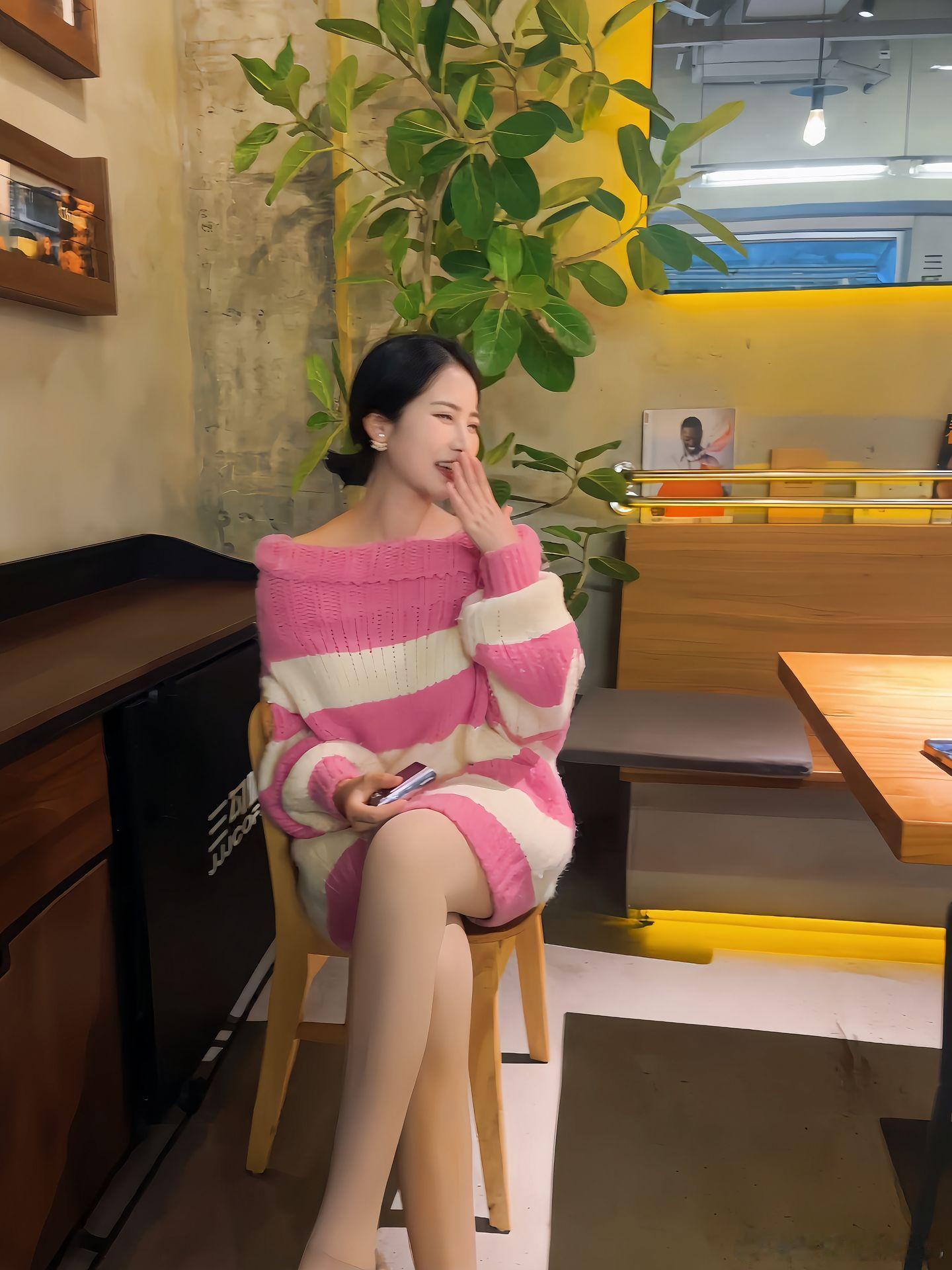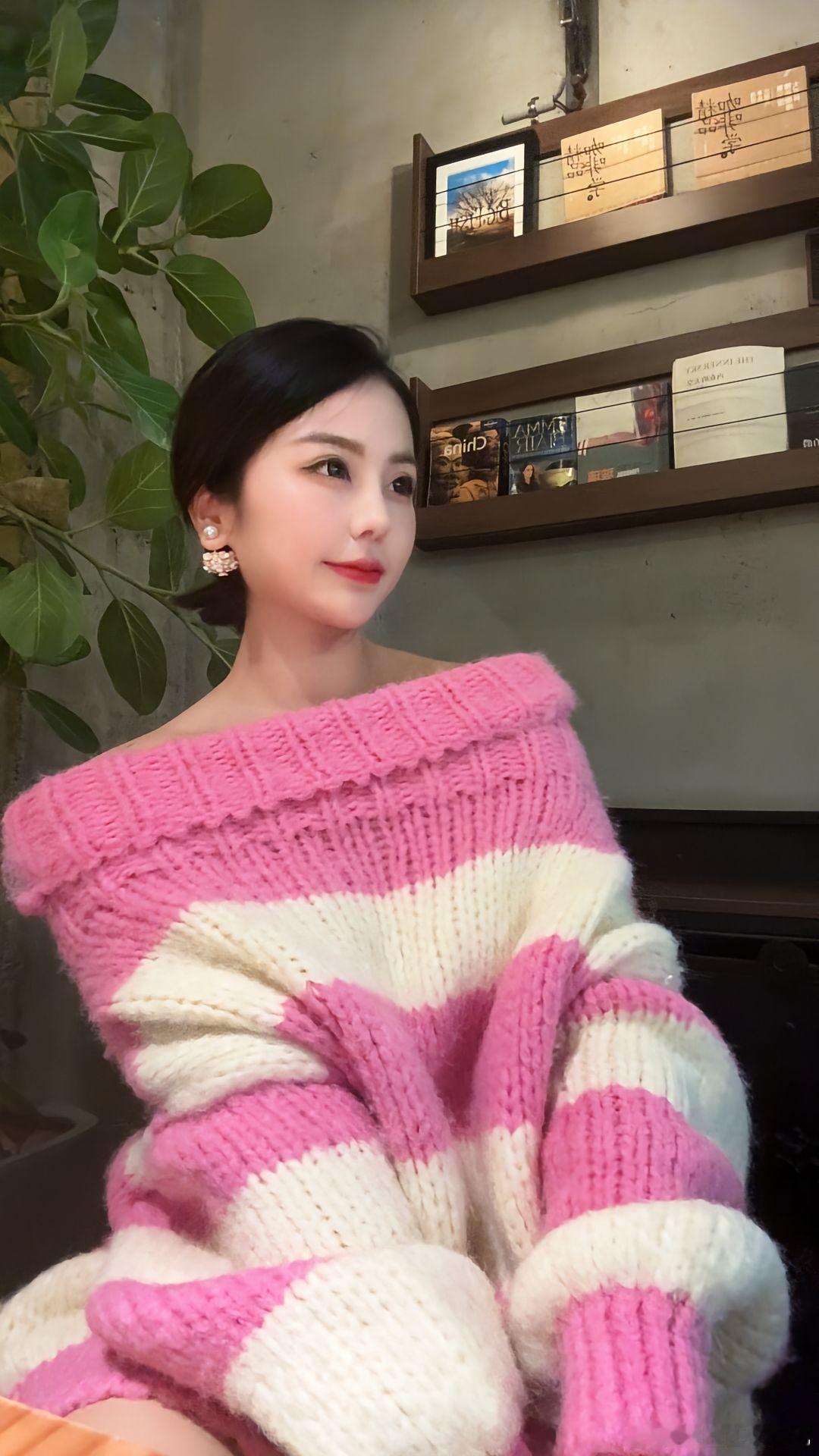 毛绒毛衣+微喇白色牛仔裤=温柔到发光