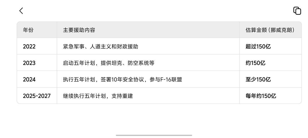 挪威支持乌克兰:大金主,一定要坚持住 最近看有条友对挪威再次无偿援助乌克兰70亿美元感叹不已。 其实对挪威来讲,乌克兰就是大金主,支持乌克兰这点钱对挪威真不算什么! 因为俄乌冲突以来直接获利最大的国家大约就是挪威了。 挪威这个北欧国家主要收入是石油天然气出口,俄乌冲突以来欧洲大幅减少俄罗斯油气采购,挪威石油天然气销售得到几乎翻倍增长。 有数据统计,2021年挪威油气收入500亿美元(430亿挪威克朗)左右,2022年达到高峰1170多亿美元(1000亿挪威克朗)。 后来几年虽然有所下降,但挪威石油天然气收入也保持在900亿美元以上。 当然挪威是懂得感恩的国家,这几年也向乌克兰提供大量援助,每年保持在大约150亿挪威克朗。 每年15%左右的销售支持,挪威也是场面人!