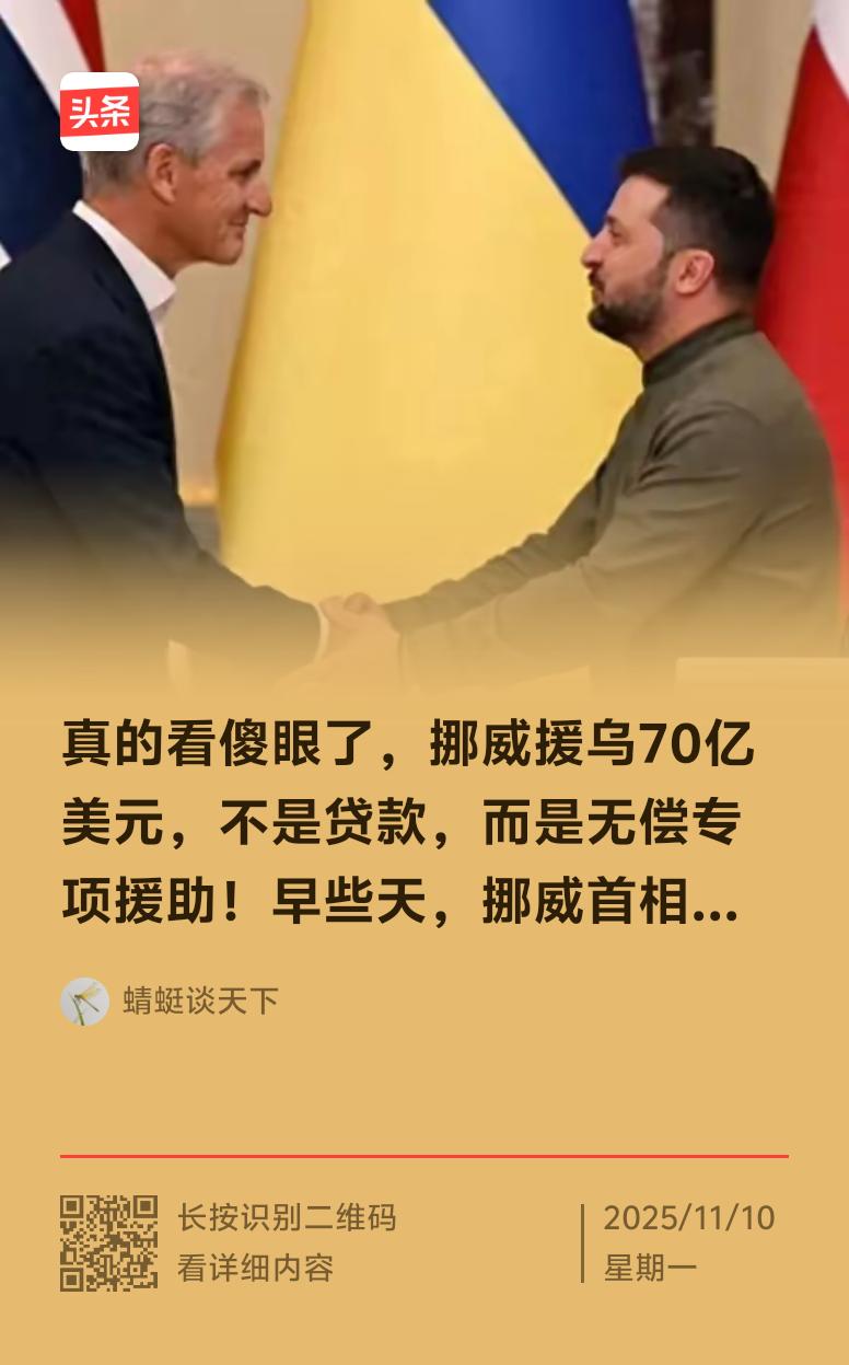 挪威支持乌克兰:大金主,一定要坚持住 最近看有条友对挪威再次无偿援助乌克兰70