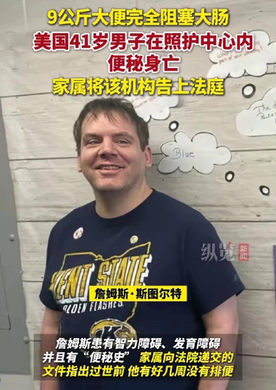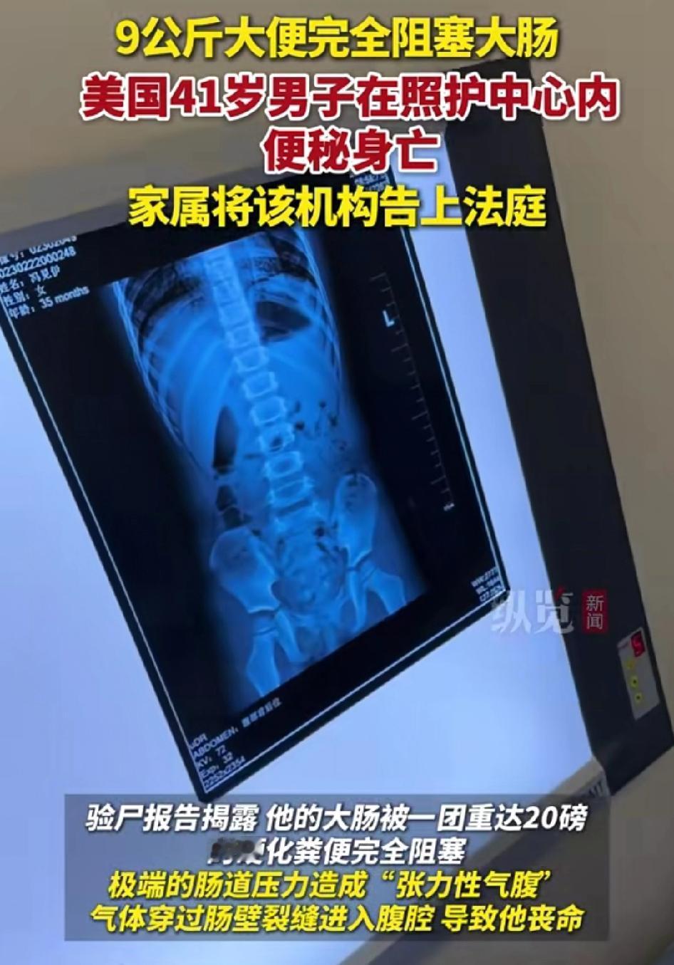 便秘导致体内有9公斤大便,男子最终死亡! 想想都可怕,9公斤大便什么概念?一瓶500毫升矿泉水是一斤,相当于18矿泉水!无法想象当事人会有多痛苦! 事发在美国41岁男子詹姆斯患有自闭症以及双向情感障碍,无法清楚表达。 不过这家残障照顾中心在男子几周甚至更久的时间没有排便,居然没有做任何干预,甚至连记录都没有,妥妥的拿钱不办事! 如果男子稍微正常一些,早就大哭大闹了,果然在漂亮国他不闹事就没人管!而工作人员可能也是习惯了敷衍,并且在交班过程中或许也抱着,下一班他就拉了的心态吧! 就这样在只吃不拉的状态下日子一天天过去! 但最可笑的是在死亡当天,肚子都肿胀如鼓,该机构工作人员不是呼叫救护车,居然是让他蹲马桶,最终因张力性气腹死亡,也就是肠道破裂导致大量肠道细菌气体进入腹腔腐蚀内脏! 这些在岗位上混日子的工作人员,可以说就是在谋杀! 目前男子家属已经将该机构告到法院,并索要巨额赔偿! 对此你怎么看?