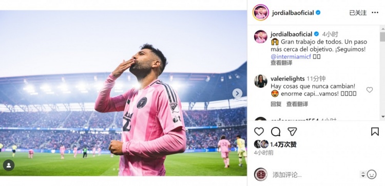 直播吧11月24日讯美职联东区半决赛,阿尔巴首发出战,迈阿密国际4-0击败辛辛那提FC,晋级下一轮。
