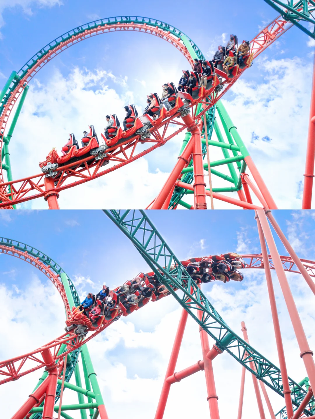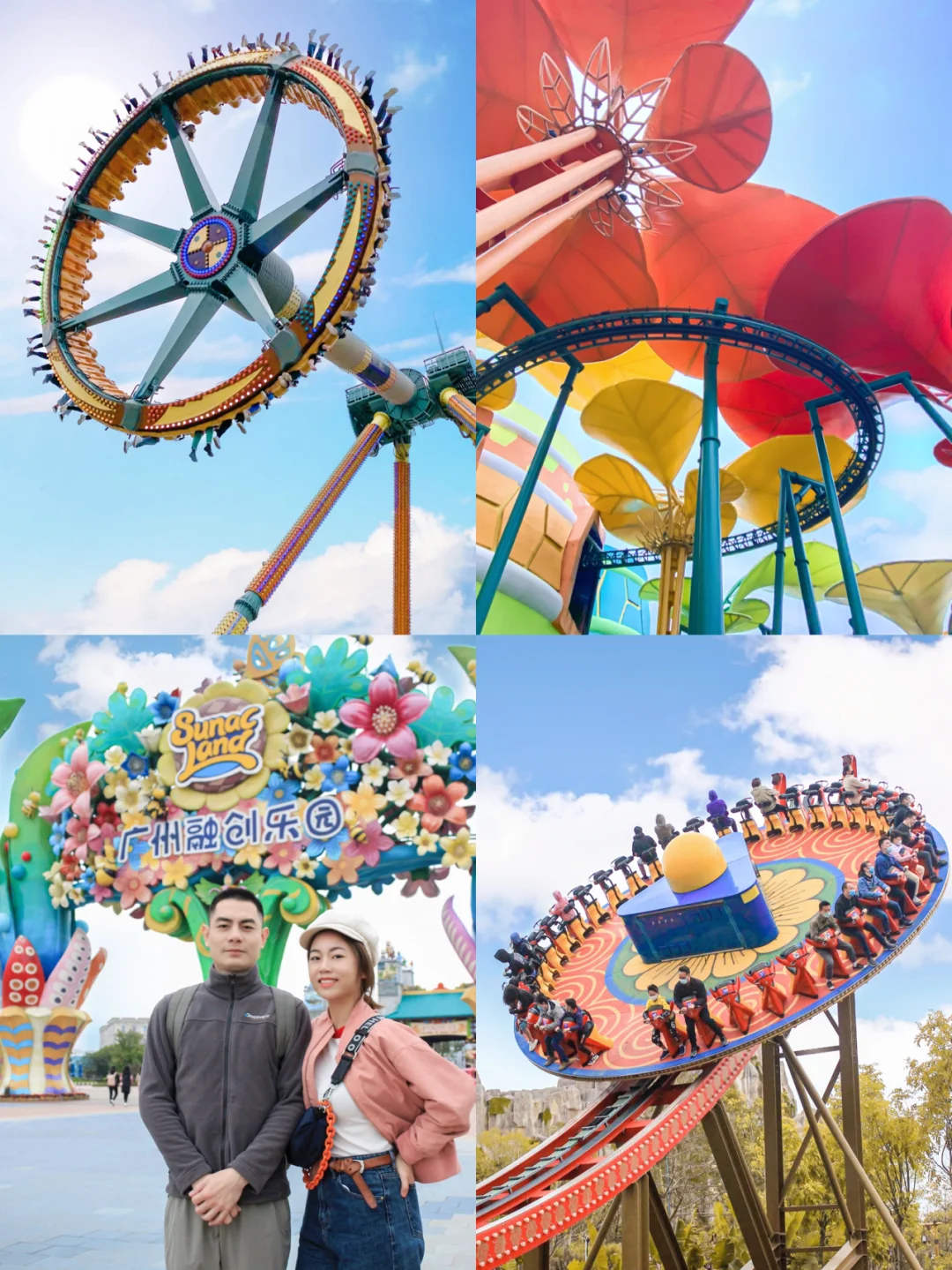 😄心仪花都的融创乐园很久了,趁着周末档期,和男友的去了一趟广州融创乐园,可太棒了❗️赶紧给大家整理一份游玩攻略! . 🌟广州融创乐园4大主题乐园🌟 水世界|雪世界 |体育世界|融创乐园 🎢我们去的是融创乐园,以机动游戏为主 . 🚗交通 1⃣️自驾车:融创乐园停车场,24元/天,4元/小时;【融创茂】停车场,前4小时免费; 2⃣️公共交通:地铁三号线【机场北站】,换乘东环城际到【花城街】站D出口即到正门。城轨固定班次发车,可提前在12306购买,现场购买凭身份证购票+进站。 . 📷游玩: 我们购买的是一票通,30+设备任玩,刺激好玩的机动游戏基本囊括在内,建议顺时针游玩。 1⃣️飞跃广东:强烈推荐游玩的项目,视觉效果和体验都极佳。游玩时长7分钟(一票通包含)建议坐最后一排(排队最左列)中间位置。LED球形布幕带你裸眼3D俯瞰广东名胜。 2⃣️怒海狂涛:激流冲浪(一票通包含),近乎垂直的下冲让你忍不住湿身尖叫。 3⃣️双龙飞舞:个人认为是整个乐园里面最最刺激的一个项目啦(一票通包含)红色和绿色轨道同时启动,绝绝子刺激❗️ 4⃣️锦绣转盘:一个看似不怎么刺激(一票通包含)实际很过瘾的一个项目。波浪形轨道让你感到抛起来的快感。 5⃣️花苑奇景:适合亲子游玩的一个项目(一票通包含)寻找花花公主的冒险历程。 🌟还有N多好玩的节目,推荐的还有【大树飞椅】【彩虹滑道】【射箭】。园内补充食物不算太贵,15元/鸡蛋仔/章鱼小丸子,38元/干炒牛河,i can 接受🉑️ . 🐎欢腾国际马秀🌟 今年刚引进的一个项目,1月23日首秀,周一到周六每天2场,周日5场,国际名马,歌舞杂技🤹‍♀️轮番上场,精彩绝伦的50分钟让你过足瘾❗️ ⚠️温馨提示:想近距离和表演人员互动建议坐前三排,小丑会下来邀请观众上场,也是我最喜欢的一个环节啦!放开胆子演就是了😊 广州一日游|融创乐园|情侣一日游|周末去哪|周边游|广州周边|情侣好去处|亲子游|主题乐园|机动游戏|亲子一日游|广州亲子|游乐场