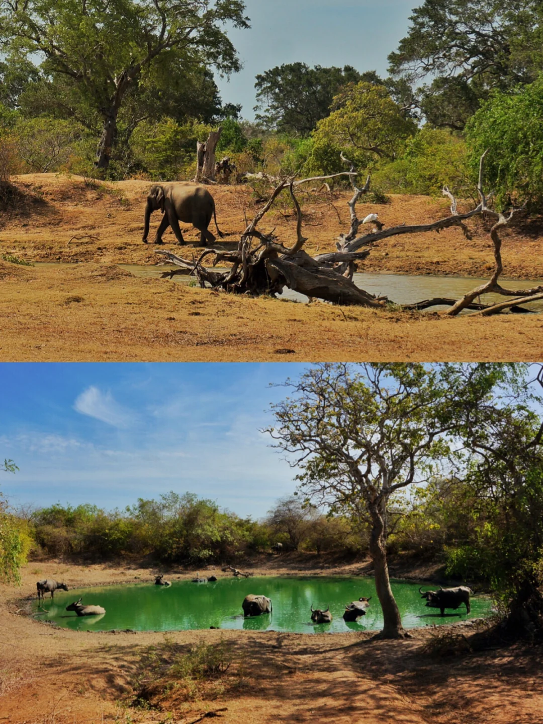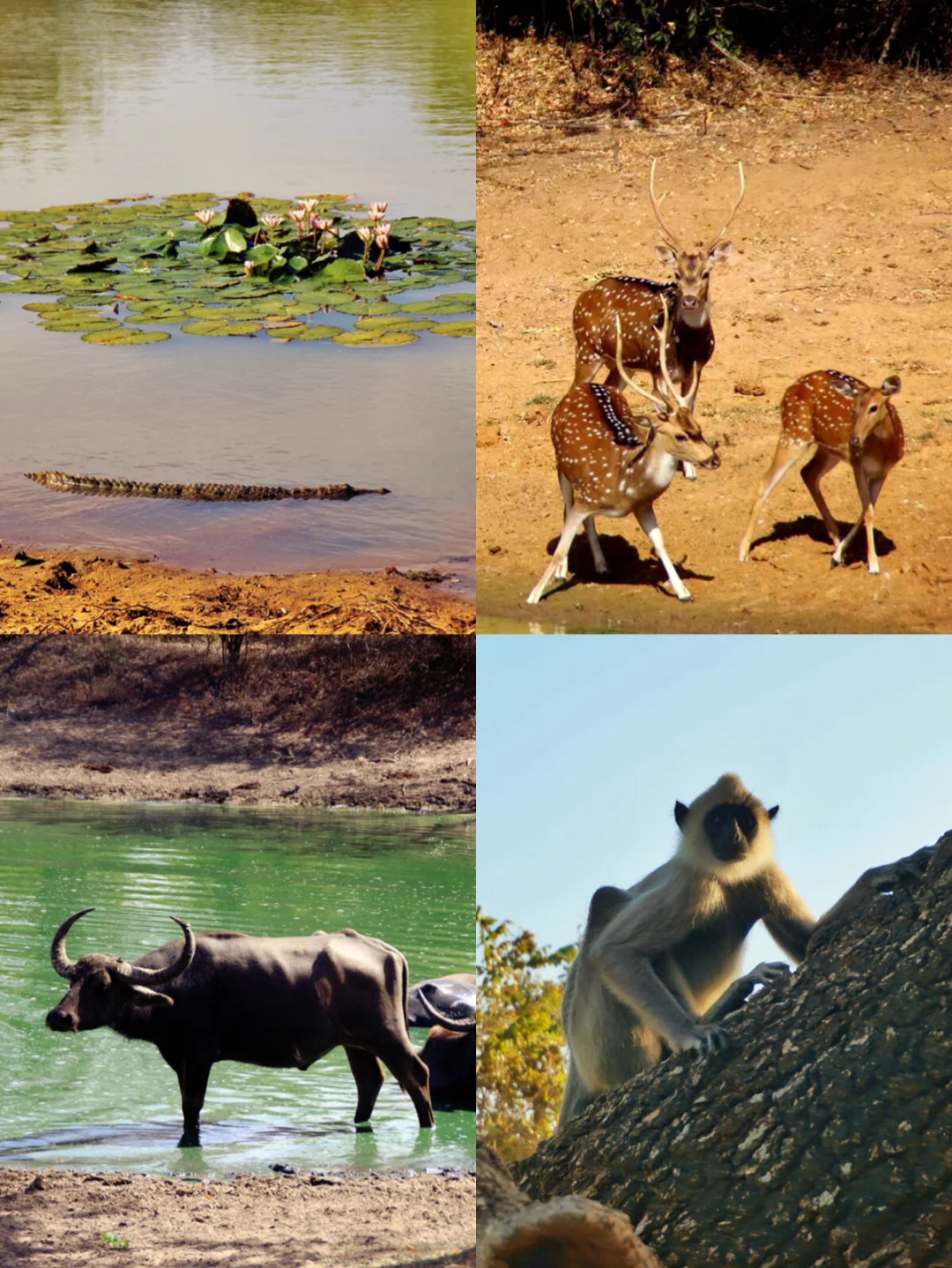 4⃣️动物🐒:公园内野生动物品种丰富:锡兰豹、黑熊、疣猪、鳄鱼、大象、鹿、狐狸、野兔、野生水牛、老鹰、巨蜥、孔雀等各种鸟类。锡兰豹、黑熊及大象是这里的明星,尤其锡兰豹,斯里兰卡独有,仅国家公园的一个区就有25头,游猎队伍都以见到它为一天的幸运之最。可惜我们当天找了好几个小时都没能看到金钱豹身影。