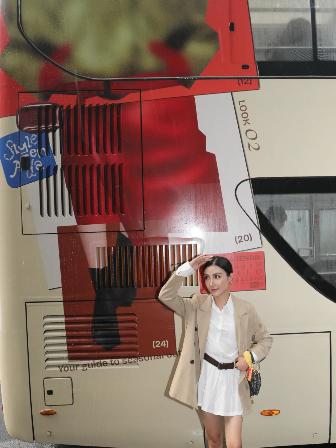 ▪️没想到,在外滩居然和秋日风格日历限定大巴偶遇! 来不及解释了 赶快换上最时髦的秋日穿搭 一起搭乘秋日风格日历限定巴士尽情出片吧! 今日的风格是———高智感静奢风 质感外套+衬衫裙+皮带 以静奢哲学对抗浮躁消费主义 当然,知性的米色也是秋日的万能穿搭公式! 来和秋日风格日历限定巴士偶遇, 记得拿起相机需要记录你的专属秋日Fitcheck哦~