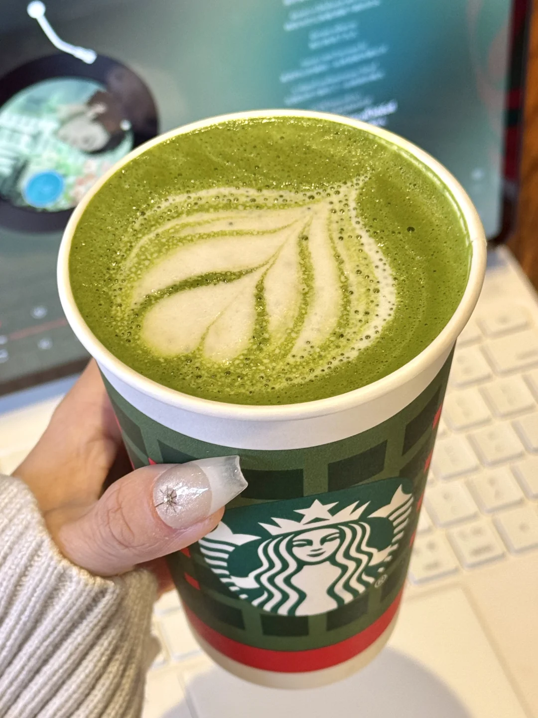 超千目细研,喝起来一点粉感都没有!感觉🍵在舌尖上滑滑梯!热的抹茶香完全释放出来了,加倍香浓加倍细腻!!恰到好处的微苦感,根本喝不腻,口感更浓郁了