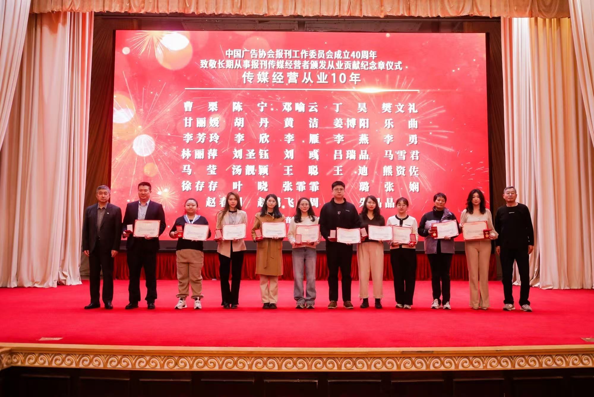 时值中广协报刊工作委员会成立40周年,与会人士回望中国报刊传媒经营的发展历程,展望系统性变革下传媒高质量发展的未来。纪念大会上,还举行了“致敬长期从事报刊传媒经营者颁发从业贡献纪念章”仪式,致敬百位长期从事传媒经营工作的资深人士。新安晚报、大皖新闻李芳玲、林丽萍、叶晓三位同志获颁传媒经营人物从业10年贡献纪念章;新安晚报、大皖新闻周晔、程志红两位同志获颁传媒经营人物从业20年贡献纪念章。