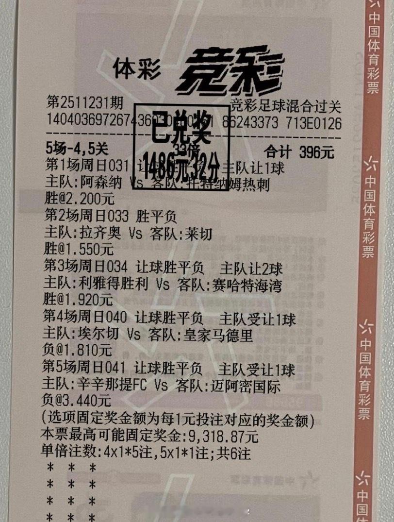 恭喜这位大神5串成功拿下,另外两位兄弟被皇马坑死了