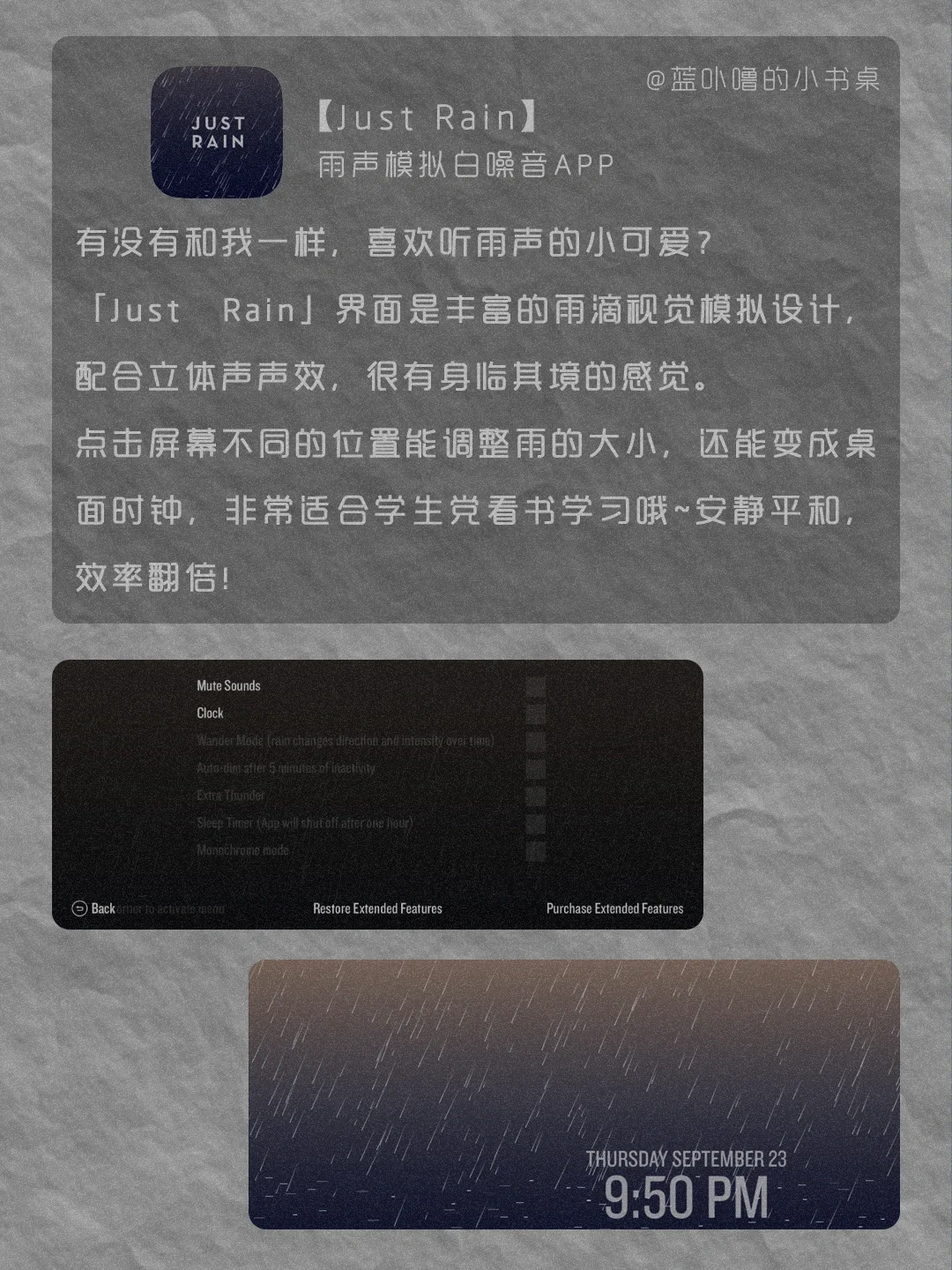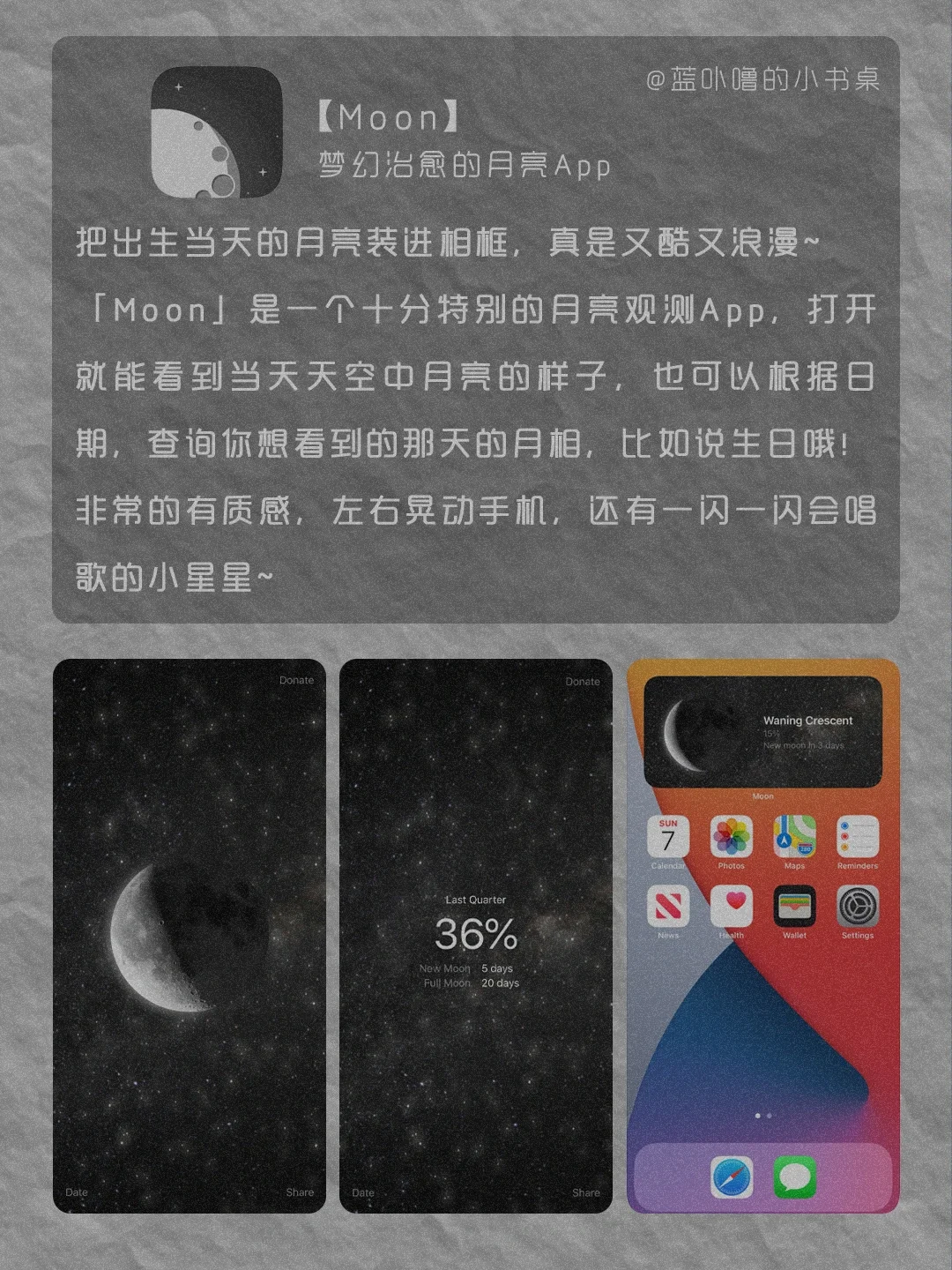 大家好呀,我是蓝卟噜的小书桌[自拍R][自拍R] 一些黑黑酷酷的小众实用App, 让你的手机多一点态度,独一无二的高级感🔝🔝 ▪️波点音乐 ▪️Fimo ▪️青藤之恋 ▪️Conquer ▪️Moon ▪️iArtbook ▪️JustRain 💫我们终将上岸 阳光万里💫