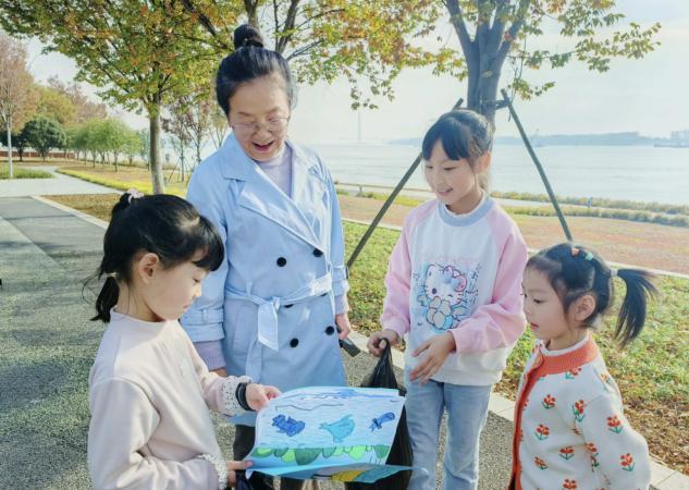 活动伊始,小朋友和爸爸妈妈一起走进科技馆,跟随讲解员参观了水生动物展区,系统了解了江豚、中华鲟、胭脂鱼等长江珍稀物种的外形特征、生活习性及生存现状,近距离感受了水生动物的魅力。随后,老师带领幼儿来到长江边,一起讨论保护长江生态的办法,加深了幼儿对保护长江生态的认知。最后,幼儿和家长变身“长江小卫士”,有的拿着自制宣传手册走上街头,用稚嫩的声音向路人科普江豚保护知识,有的去长江边捡垃圾,用实际行动给母亲河“美容”。
