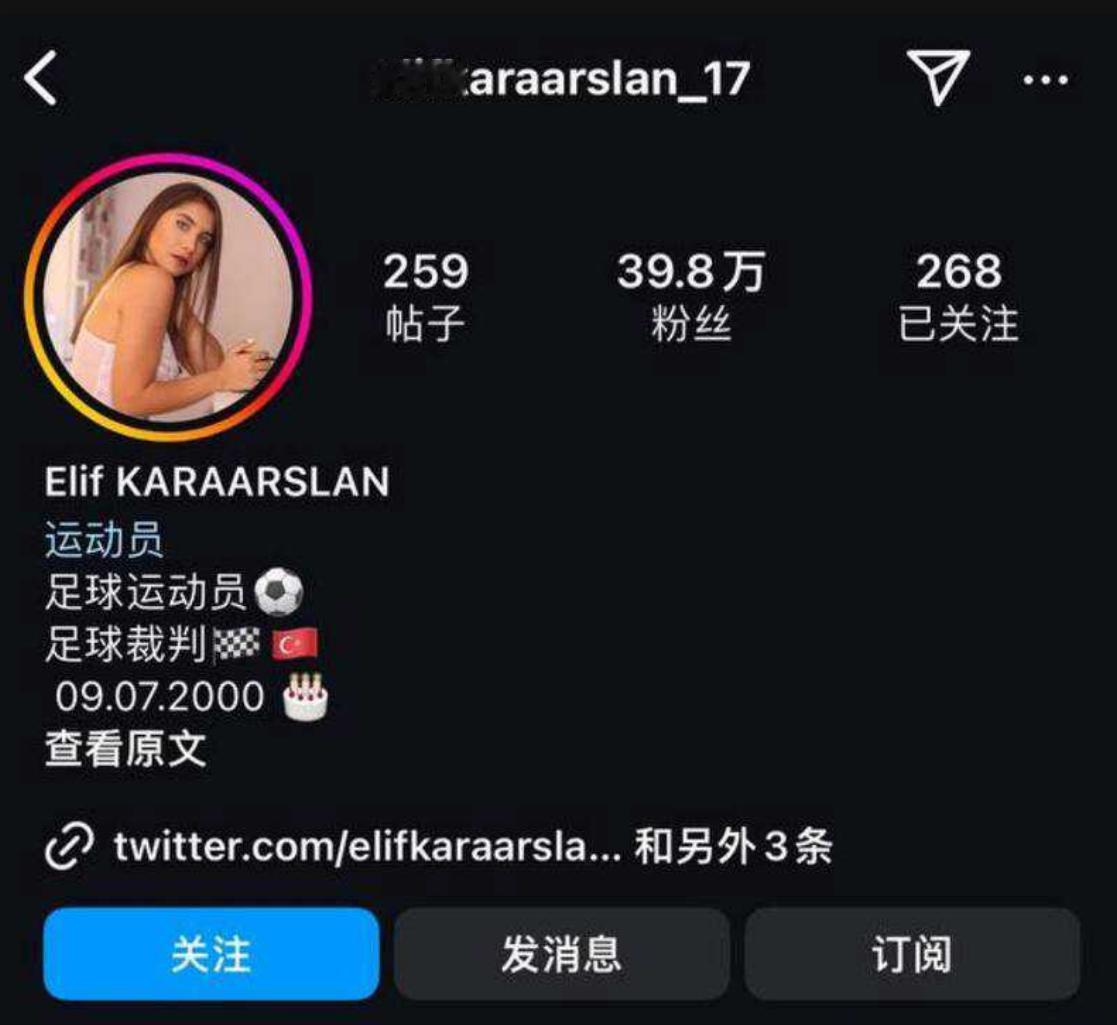 穆里尼奥刚离开的土超又出事了,24岁土耳其女裁判埃利夫·卡拉尔斯兰( Elif Karaarslan),因和61岁的FIFA管理层奥尔罕·埃尔德米尔(Orhan Erdemir),传出不雅视频,引发了广泛争议而被停职。结果埃利夫女士不服气,经过一个月的准备,人家不但要上诉,还以球员和裁判的双重身份,在推特上走红,短短时间内,粉丝数已经突破了50万人,如果继续折腾下去,这个数字还要飙升。 话说这土耳其足坛是真够乱的,从上赛季的千人群架导致联赛停摆,到数百名工作人员参与玩球,然后是土耳其足协暂停1000多名球员参加职业联赛的资格,接着又是剪不清理还乱的女裁判与国际足联的暧昧关系,这瓜包甜,也幸好62岁的穆里尼奥被解雇了,不然还真怕经不起考验啊!