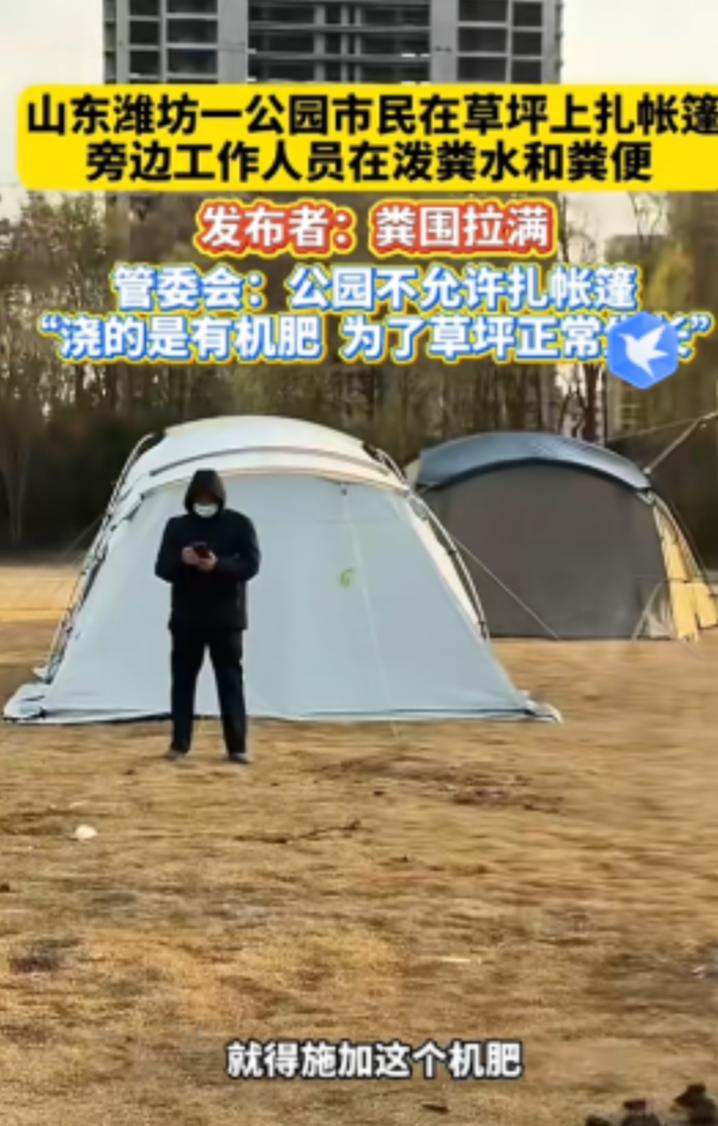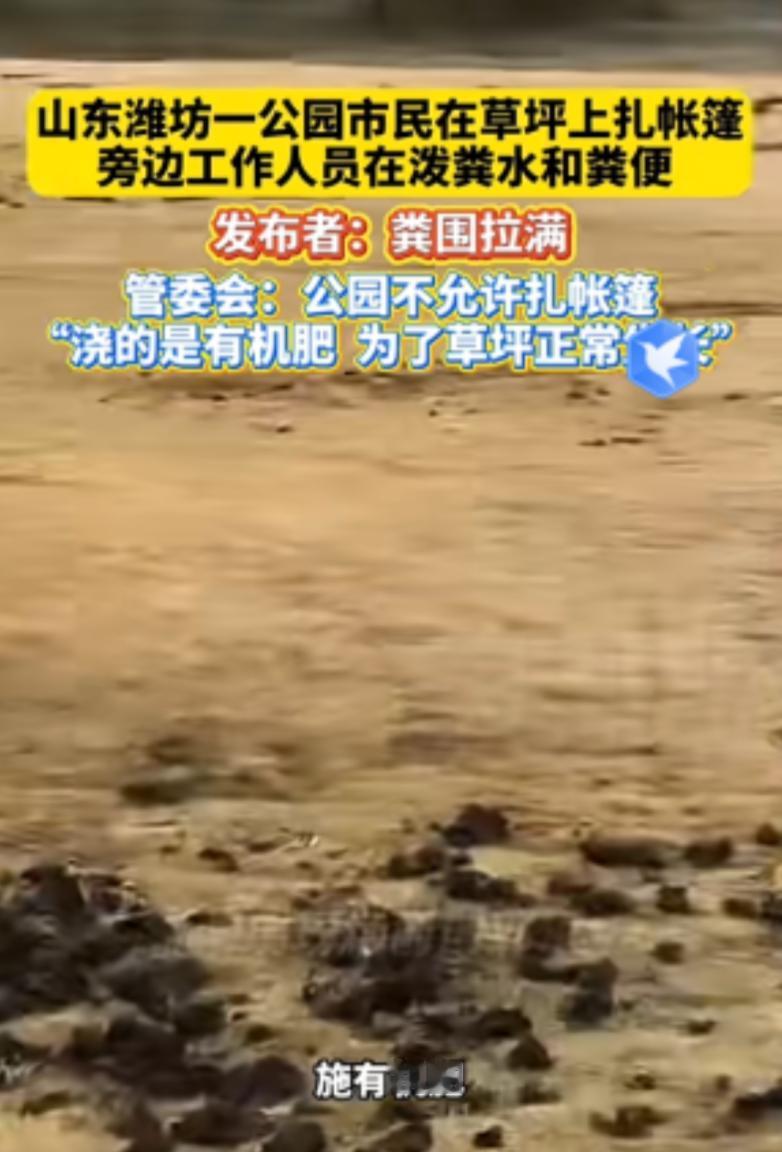 “隔着屏幕都有味!”近日,山东潍坊,一市民在公园草坪上扎帐篷准备露营,突然闻到了一股恶臭味,抬眼一看,工作人员提着桶,正在他周围泼洒粪水,粪便都落在了他帐篷旁边,游客吓得仓皇而逃。网友:“粪围感”拉满! 事情就发生在最近,那天天气是真不错,阳光不晒人还有点微风,正是出门透透气、露营放松的好时候,潍坊有位市民早就惦记着去虞河公园的草坪上待一会儿,逃离城市里的忙碌,享受点难得的松弛感。 他特意带上了露营装备,兴冲冲地赶到公园,挑了块看着顺眼的草坪,麻利地把帐篷支了起来,心里还美滋滋地想着,接下来就能舒舒服服吹吹风、发发呆了。 可谁能想到,这屁股还没在帐篷里坐热乎,一股刺鼻的恶臭味突然就飘了过来,而且越来越浓,直接把草坪原本的青草味盖得严严实实。 那味道实在太难闻了,让人忍不住皱眉头、捂鼻子,根本没法安心待着,市民心里犯嘀咕,这好好的公园,哪儿来这么大的臭味?他顺着味道抬头一看,好家伙,旁边竟然站着一位公园工作人员,手里提着个桶,正往他的帐篷周围泼洒东西。 仔细一瞅桶里装的哪里是什么清水,分明是货真价实的粪水!工作人员一边走一边泼,不少粪便都直接落在了帐篷旁边的草地上,甚至有些溅到了帐篷边缘,那股恶臭瞬间就把市民包围了,简直是 “粪围感” 拉满,别说放松了,连多待一秒都觉得煎熬。 他吓得赶紧从帐篷里钻出来,也顾不上仔细收拾装备了,手忙脚乱地把东西往一起归拢,然后 “仓皇而逃”,生怕跑得慢了,身上也沾染上那股难闻的味道。 这段经历被市民拍了下来发到网上,很快就引起了网友们的热议,大家看完视频都乐了,纷纷留言调侃:“这哪是露营,这是沉浸式‘粪围’体验啊!”“隔着屏幕都能感觉到那股味儿,太窒息了!”“工作人员这操作也太绝了,劝退方式属实独一无二”,还有网友吐槽,好好的心情全被这桶粪水搅乱了,本来挺惬意的露营,最后变成了落荒而逃,想想都觉得又好气又好笑。 后来有记者联系到了公园方面,对方给出的解释是,他们这是在给草坪施 “有机肥”,初衷是为了让草地长得更茂盛,至于为什么偏偏在市民扎帐篷的时候泼,公园方面说园区里本来就有规定,不允许私自扎帐篷露营,工作人员这么做,也是为了劝阻市民的违规行为。 可这个解释网友们和不少围观的人都不买账,大家觉得就算是不允许扎帐篷,就算是要给草坪施肥,也没必要选在这种时候、用这种方式啊。 工作人员完全可以走过去跟市民好好沟通,把园区的规定说清楚,哪怕态度硬一点劝阻,也比直接泼粪水来得体面,这种一言不发就用粪水 “突袭” 的做法,实在太粗暴了,不仅让市民受了委屈,还污染了环境,影响了公园的形象。 其实大家也能理解,现在露营的人越来越多,有些游客确实会留下垃圾,给公园管理带来不少麻烦,但管理归管理,总得用合理的方式吧?竖个警示牌、多派工作人员巡逻提醒、遇到违规的耐心劝导,这些方法都比泼粪水强啊。用这种 “以脏治乱” 的手段,不仅解决不了根本问题,还会让游客心里不舒服,以后谁还敢去那个公园游玩? 本来好好的虞河公园,风景不错是市民休闲放松的好地方,结果因为这桶粪水,现在大家一提起它,首先想到的可能不是青草绿树,而是那股散不去的臭味。 这桶粪水泼出去,泼脏的不只是帐篷和草坪,还有公园管理者的形象。希望公园方面能好好反思一下,换一种更文明、更合理的管理方式,别再让这种 “有味道” 的闹剧重演了,毕竟,公共空间的秩序,靠的是互相理解和文明管理,而不是这种让人难以接受的 “野性劝退”。 (信息来源:《山东潍坊一公园市民在草坪上扎帐篷,旁边工作人员在泼粪水和粪便,发布者:粪围拉满。管委会:公园不允许扎帐篷,“浇的是有机肥为了草坪正常生长”》都市现场)