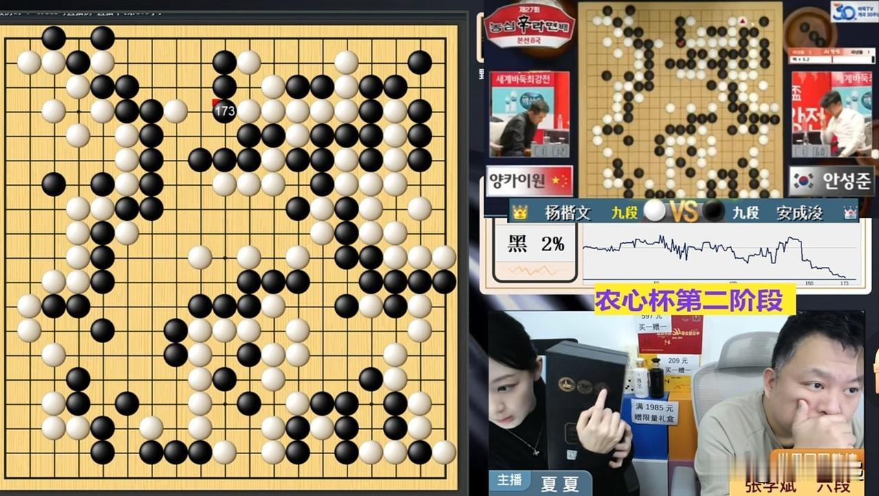 农心杯围棋团体赛杨楷文执白222手胜韩国选手安成浚!!棋局中盘一度混乱,杨楷文放