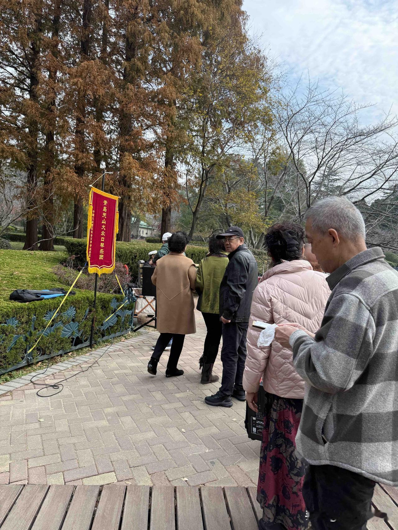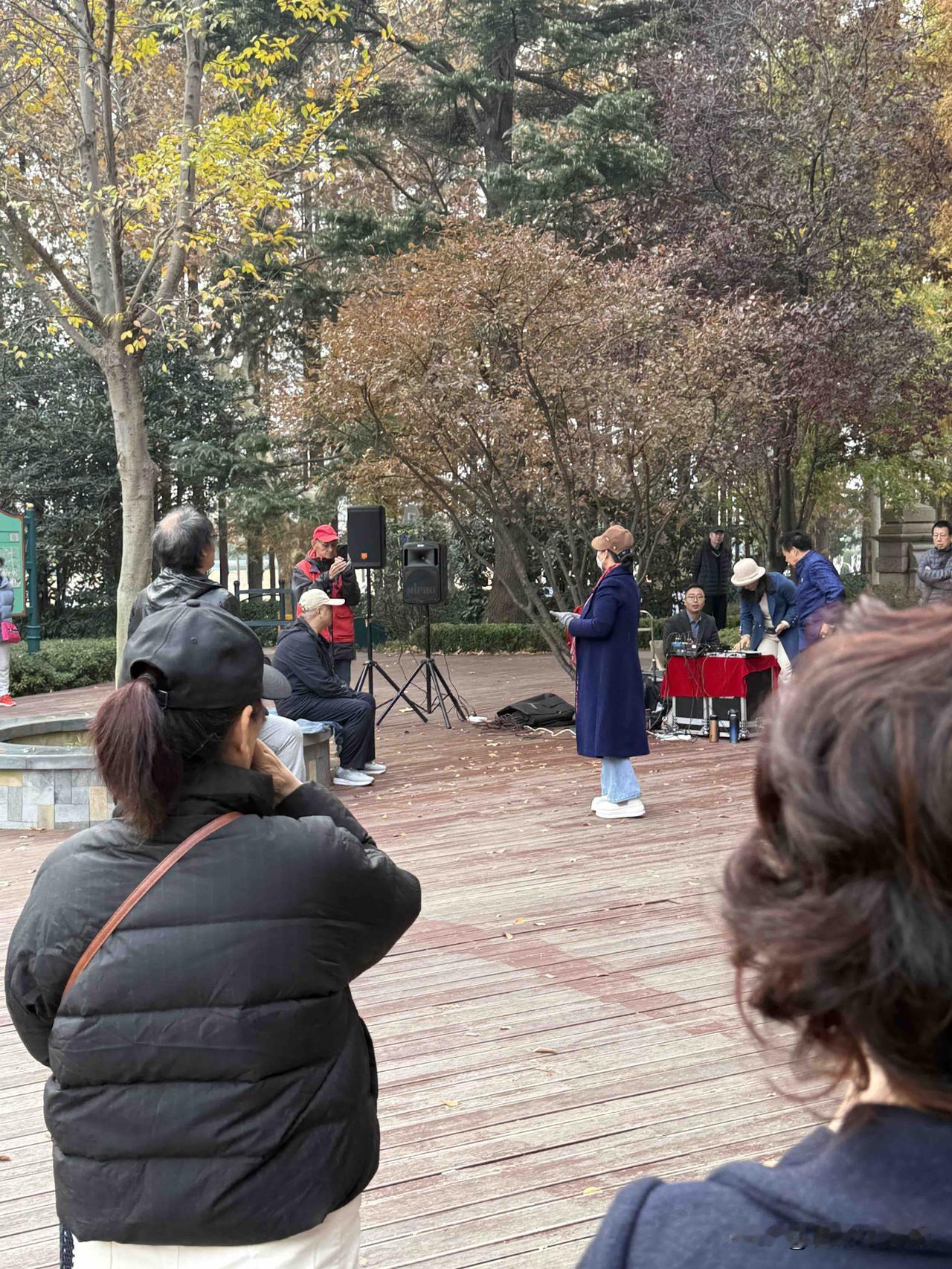 我昨上午又去青岛中山公园打卡了,天气好不冷不热的,人们都纷纷走出家门去户外活动玩耍,我从小西湖门进入的,首先是口哨哥张会长带领的团队在演出,在往前走就是鼓乐队在演出,在往前走就是天山口琴艺术团的演出了,这一路下来各个地方都有跳舞的合唱团的抖空竹的,打太极拳的,各种活动和团队都来了,来公园里的游人也很多,我也是先转了一大圈后再去了紫藤艺术团看演出了,一上午很快就过去了,原创。