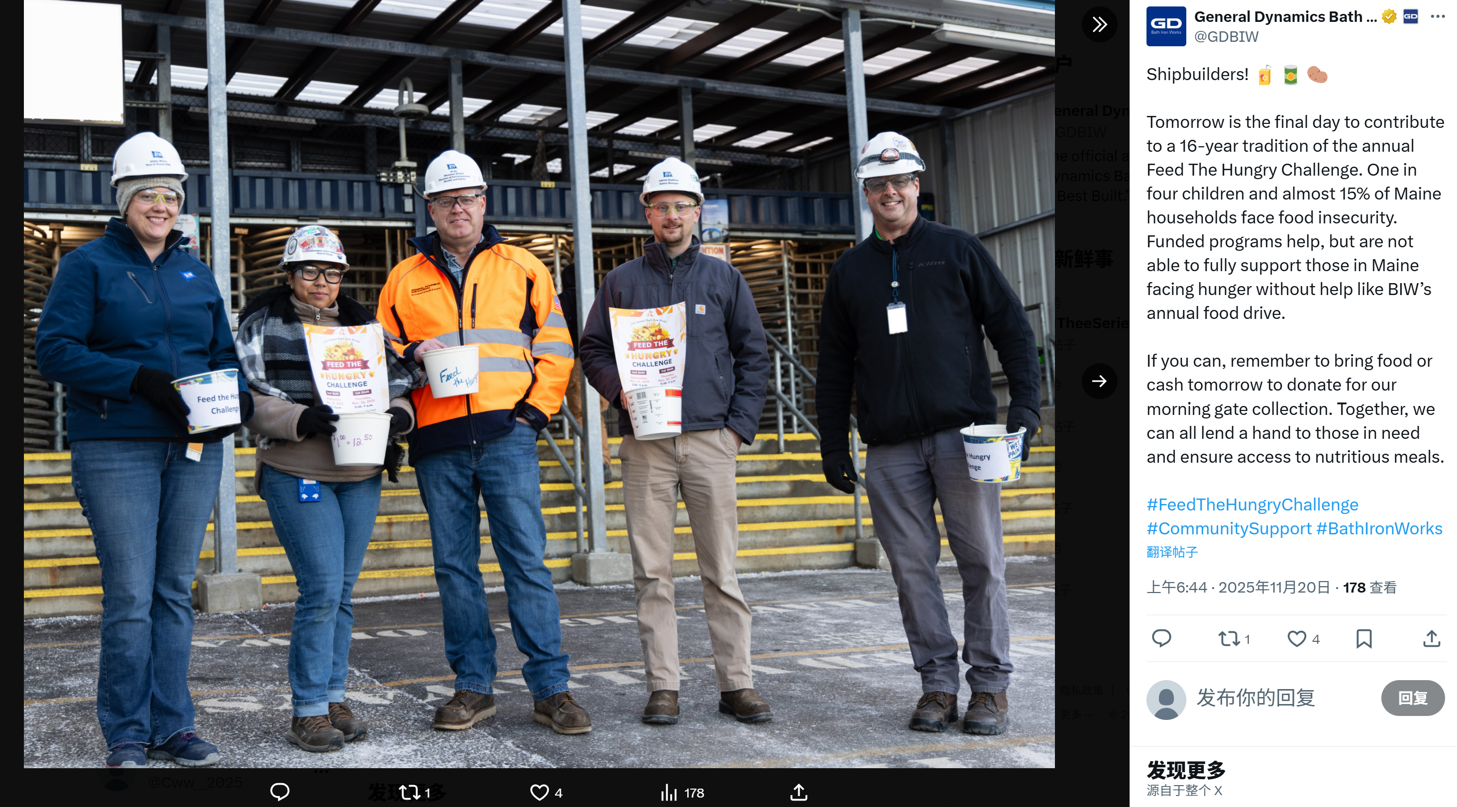 BIW近期举办了慈善募捐活动,旨在缓解缅因州贫困人口的粮食安全与供给问题在BIW