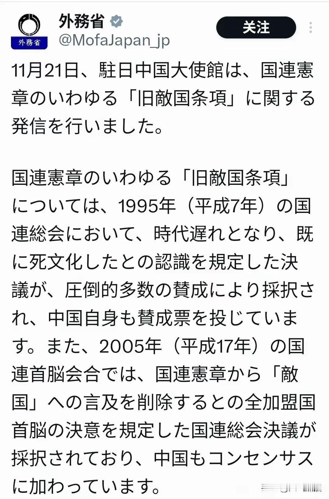 日本又在这混淆视听 日本外务省发文称“敌国条款”目前已经废除,现在再提起此条款,